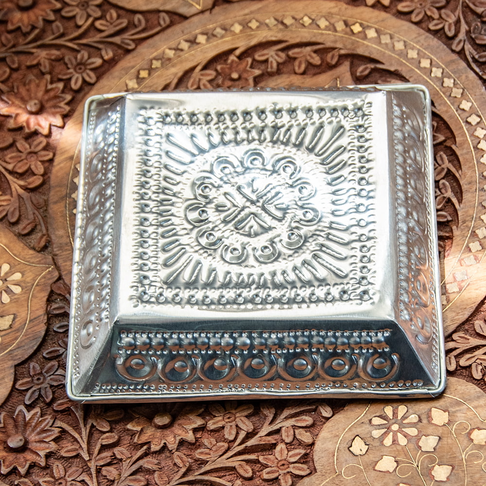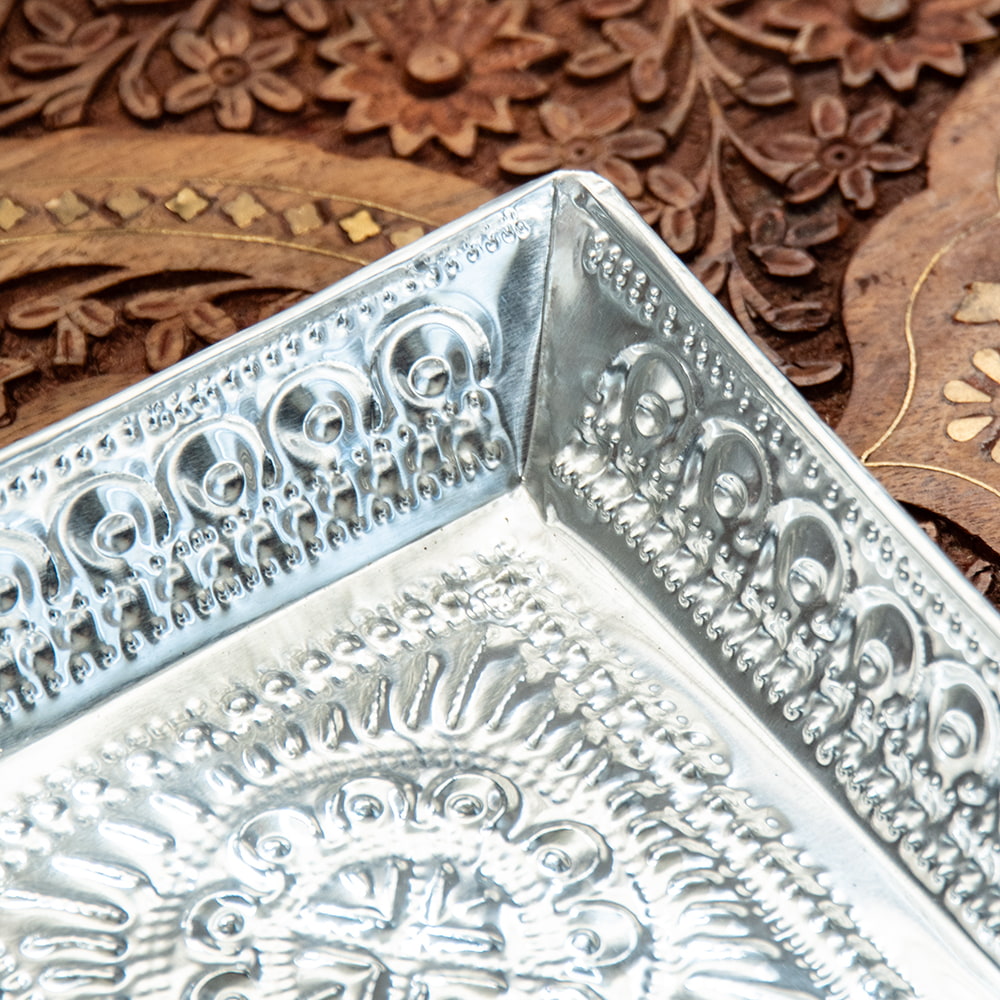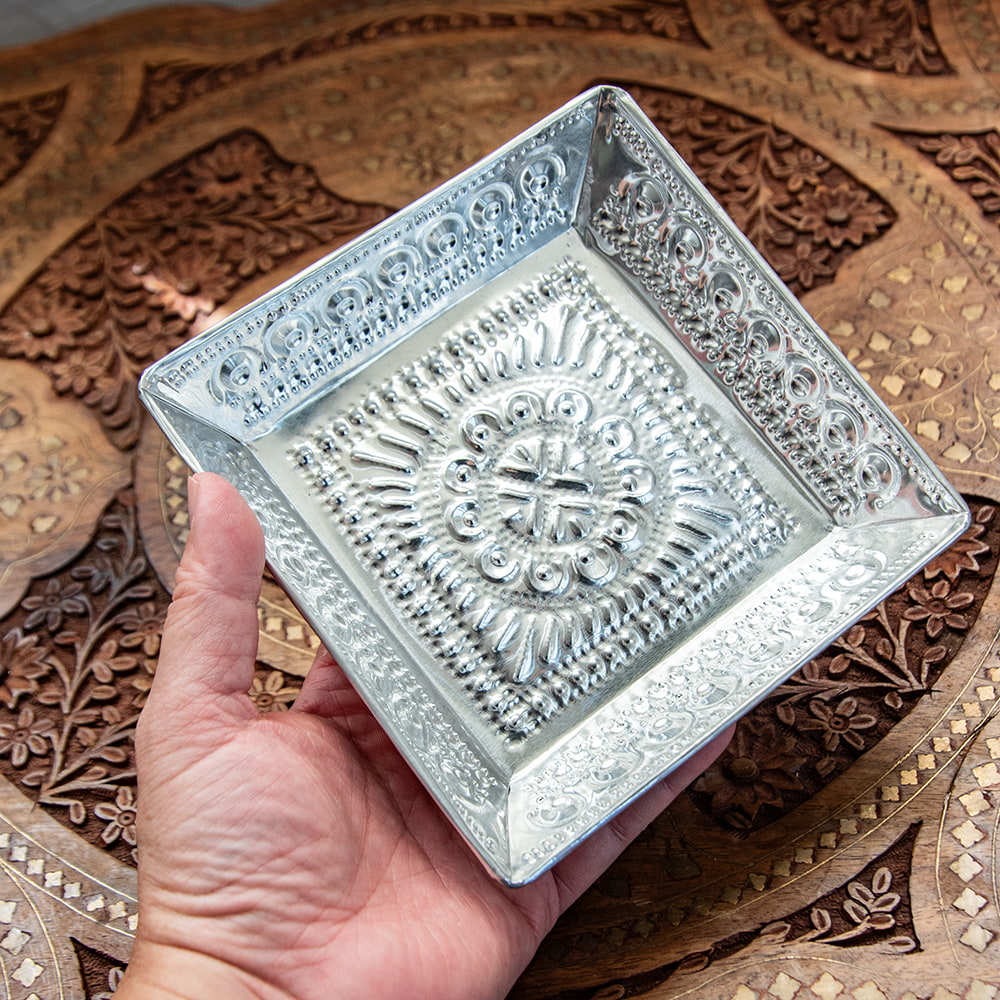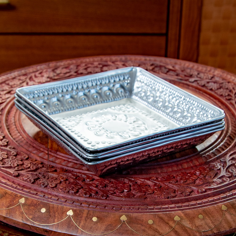 【4個セット】バリのアルミスクエアトレイ 手打ち細工が美しい - 16cm x 16cmの同一カテゴリ商品