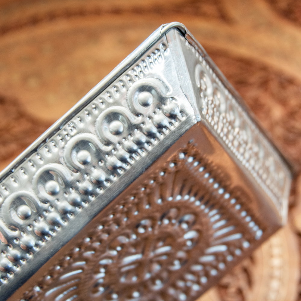 バリのアルミスクエアトレイ 手打ち細工が美しい - 15.5cm x 15.5cm x 4個