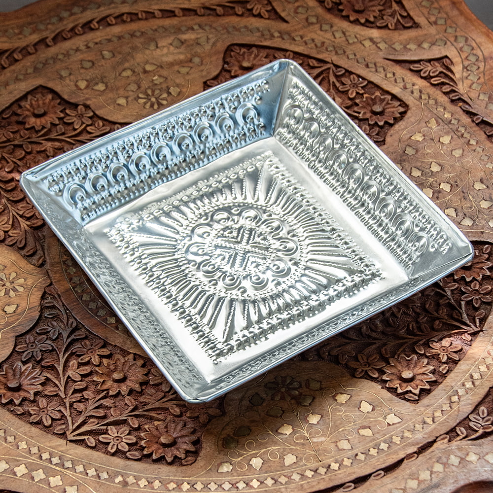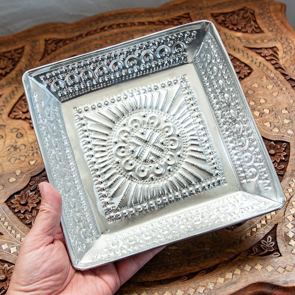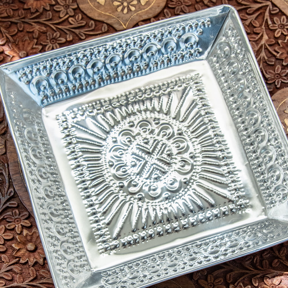 【4個セット】バリのアルミスクエアトレイ 手打ち細工が美しい - 20cm x 20cmの同一カテゴリ商品