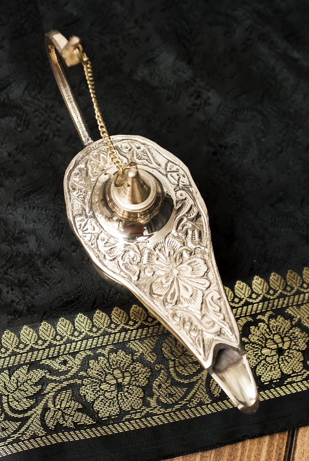 アラジンの魔法のランプ形のエキゾチックな雰囲気の置物です。千夜一夜物語を読み、アラジンを見てから、心にひっかかっていたあのランプ。こすると魔法の精が出る不思議なランプ。インドに行けば、きっとあの形の物があるに違いない…とずーーっと探していたのですが、8年目にして発見しました!!■飾りとして、実用品として