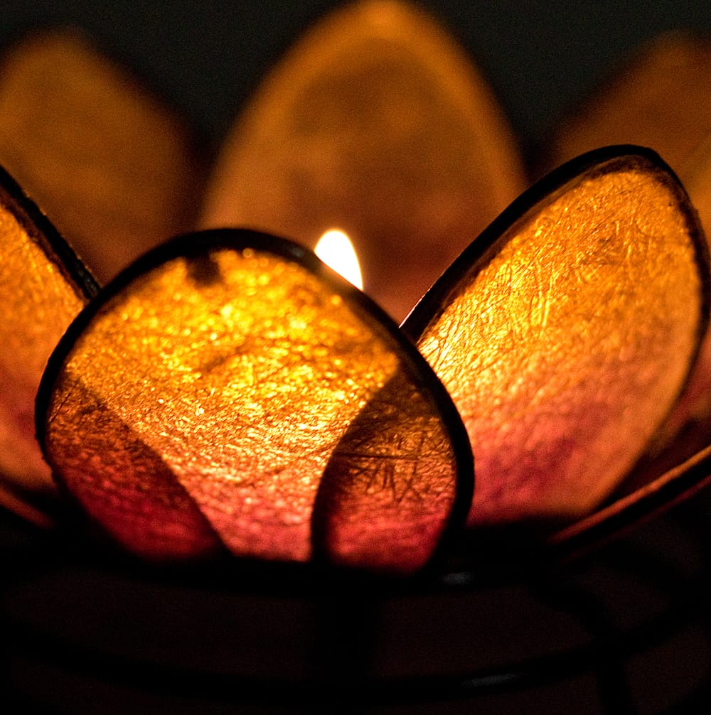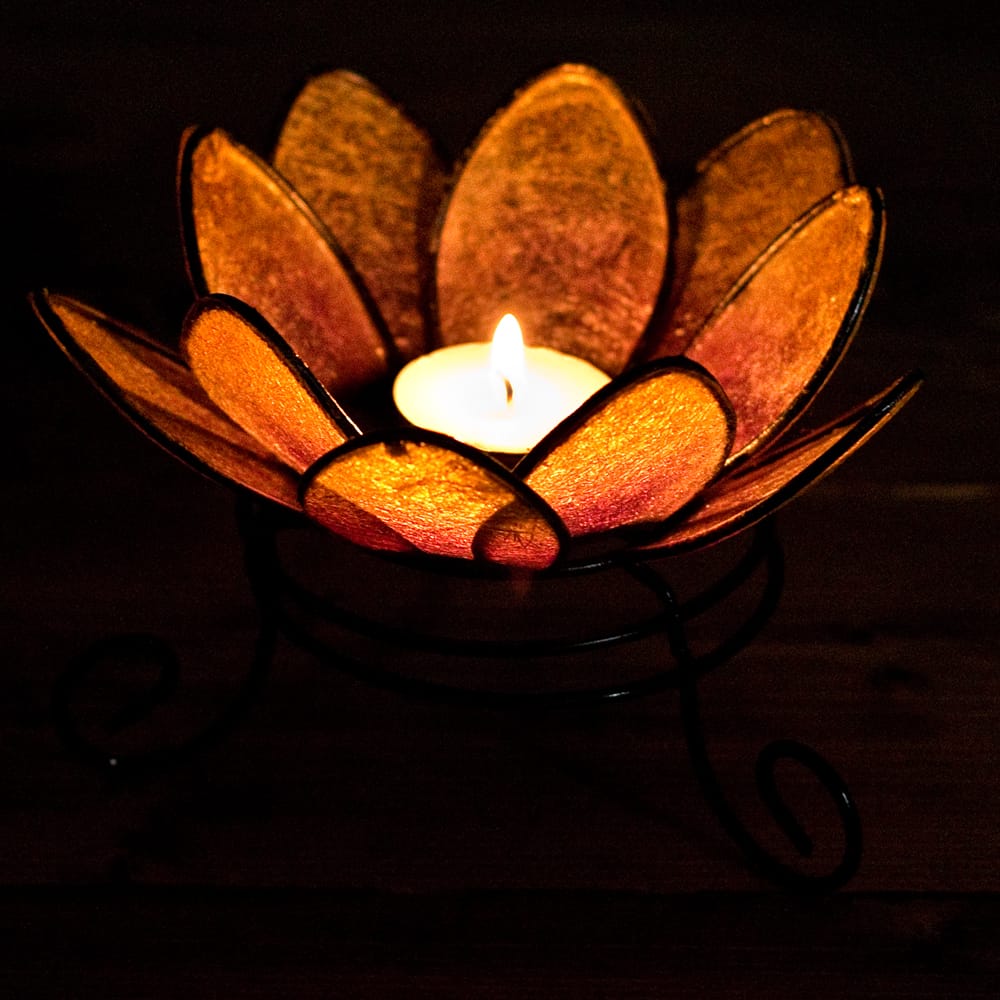 アジア好きに大人気! 蓮の花のデザインのキャンドルスタンドです。中心がお皿になっていますので、その部分にティーキャンドルを置いてお使いください。 部屋を暗くしてティーキャンドルを入れると幻想的に光が漏れて、お部屋の雰囲気がお洒落に変わります。キャンドルを入れなくても明るい色合いなので、お部屋のアクセントになりますよ。アジアンなお部屋作りに、とっても便利で可愛い1品です。