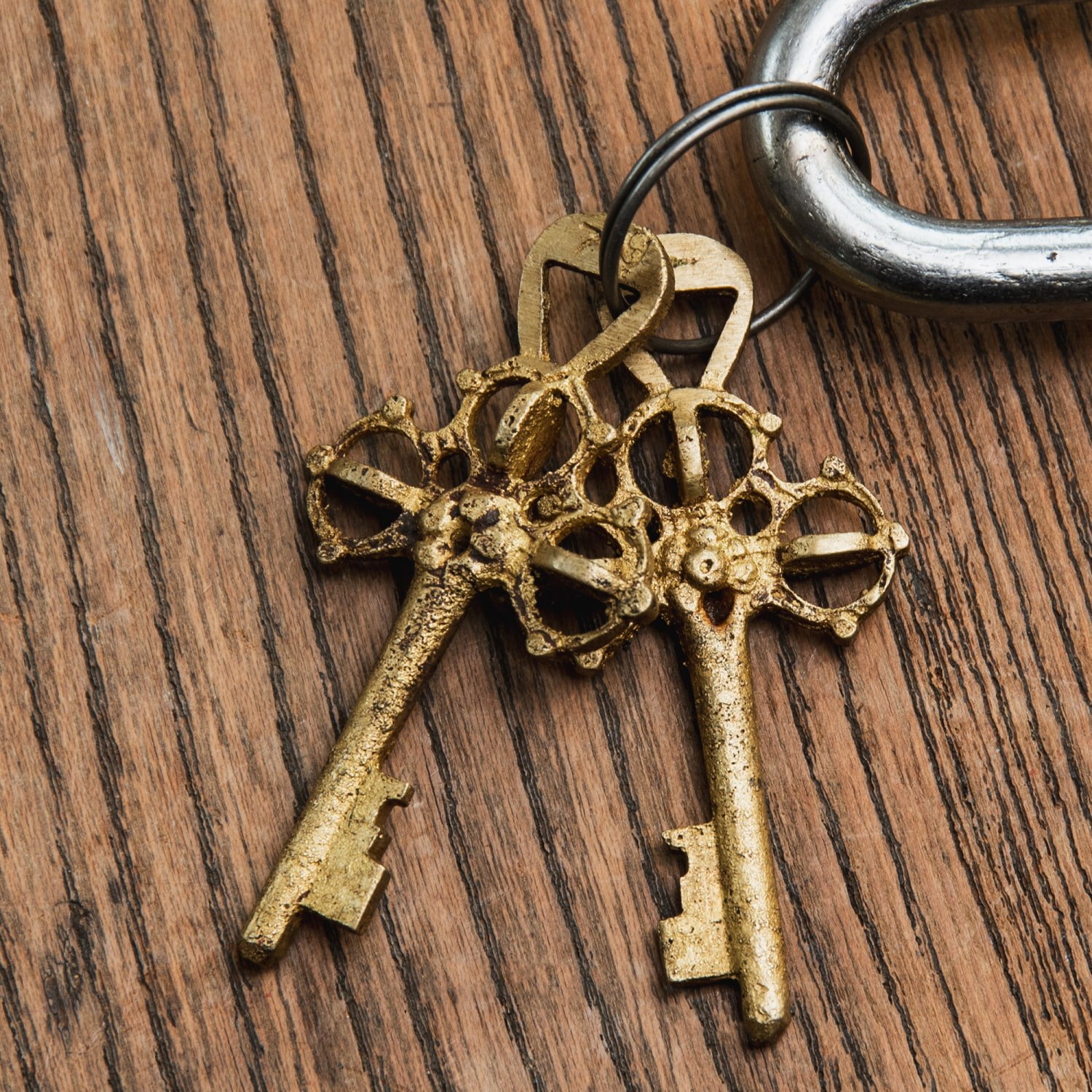 鍵と一緒に撮影してみました。重厚で堅牢な南京錠です。
