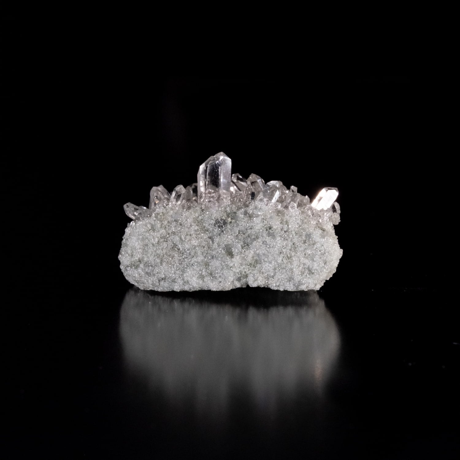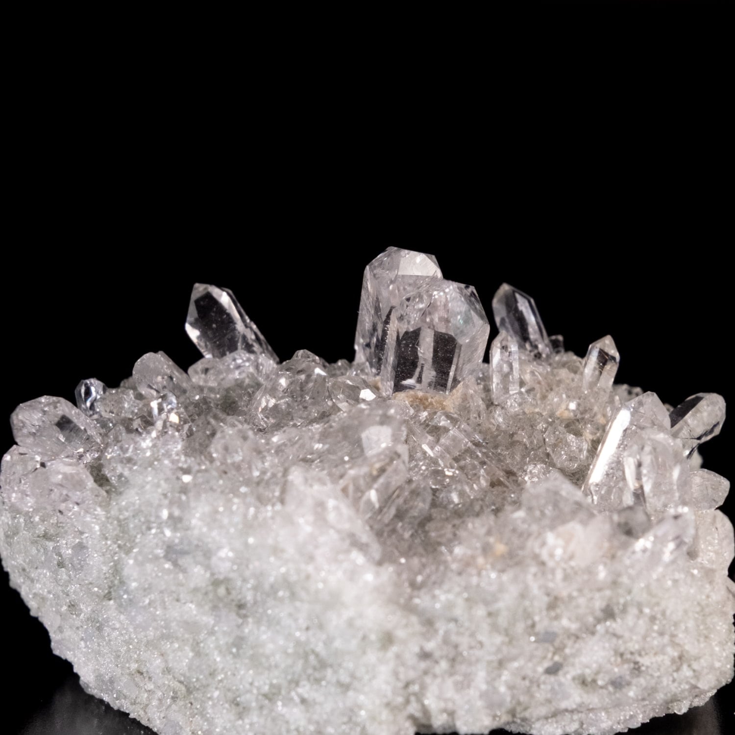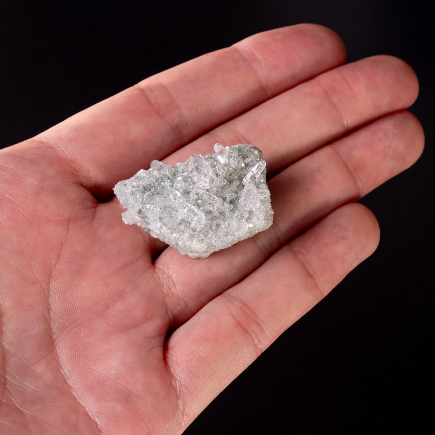 手ごろなサイズ感に透明度が抜群のクラスターです。ツインと言われる形状のポイントが印象的で、小さな結晶がキラキラと反射する光が非常に魅力的です。