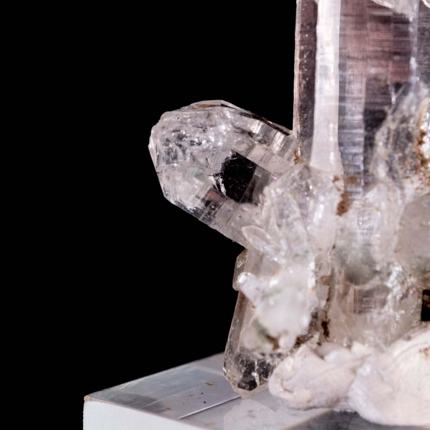 ・多様な表情: 緑色のクローライト(緑泥石)、黒色のアナテース(鋭錐石)、金色のルチル(金紅石)などが含まれる、個性豊かな結晶が見られます。