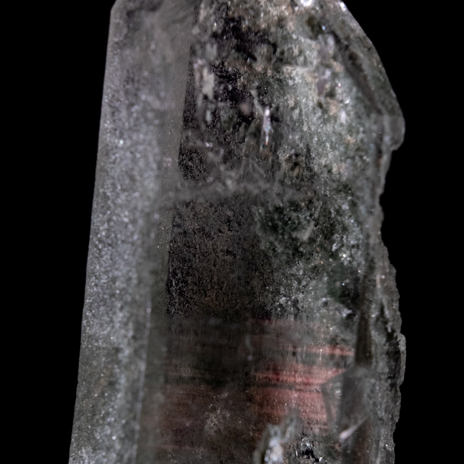 拡大写真です。透明度抜群のポイントにクローライトがガーデンの様に見え、非常にキレイです。