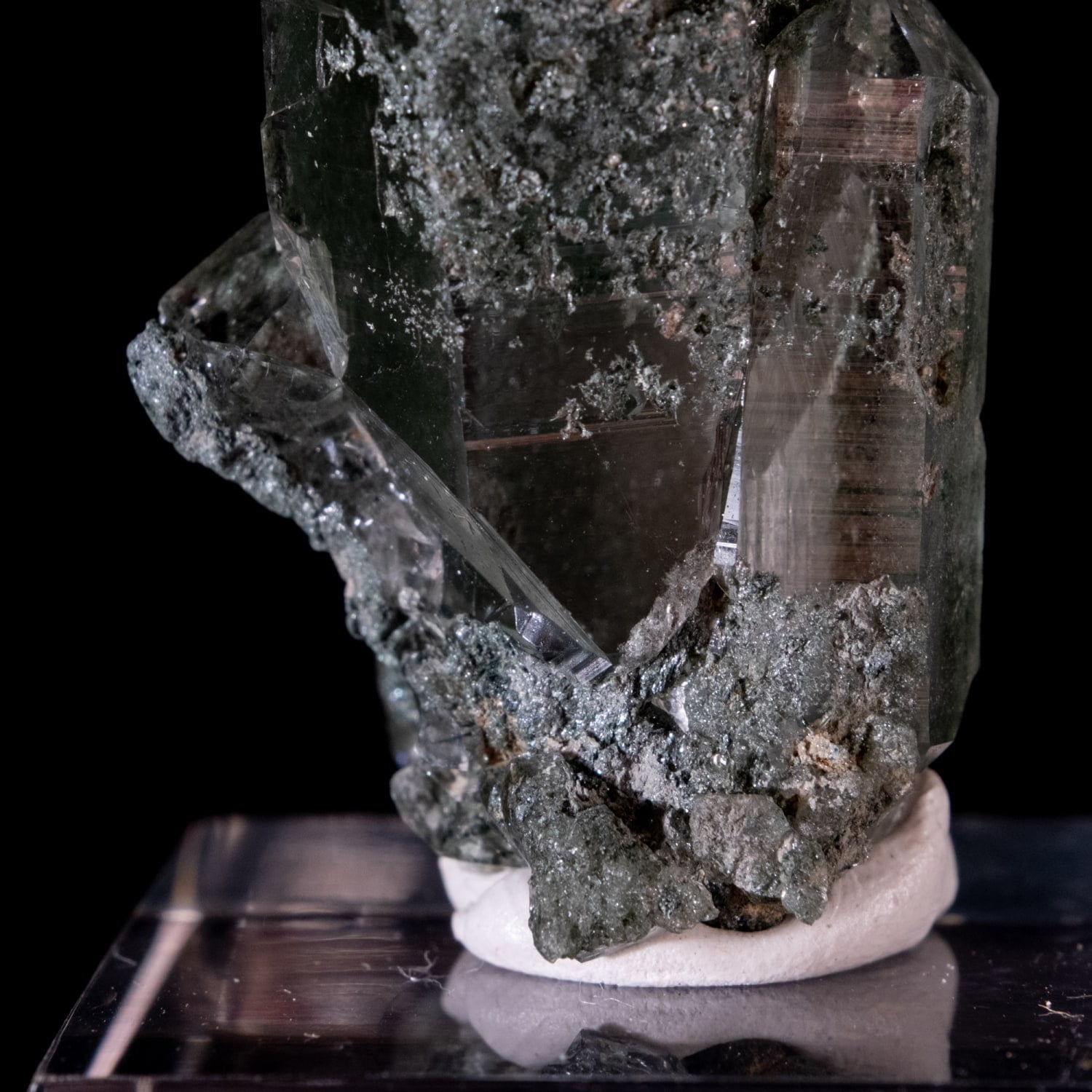 拡大写真です。根元の部分はクローライトがびっしりと付着し存在感があります。