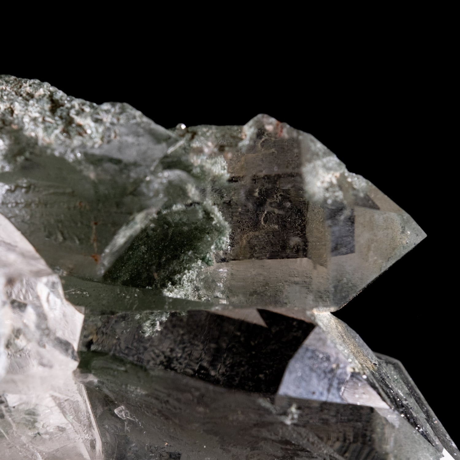 拡大写真です。抜群の透明度で、クローライトのグリーンがファントムの形状になっているのが確認出来ます