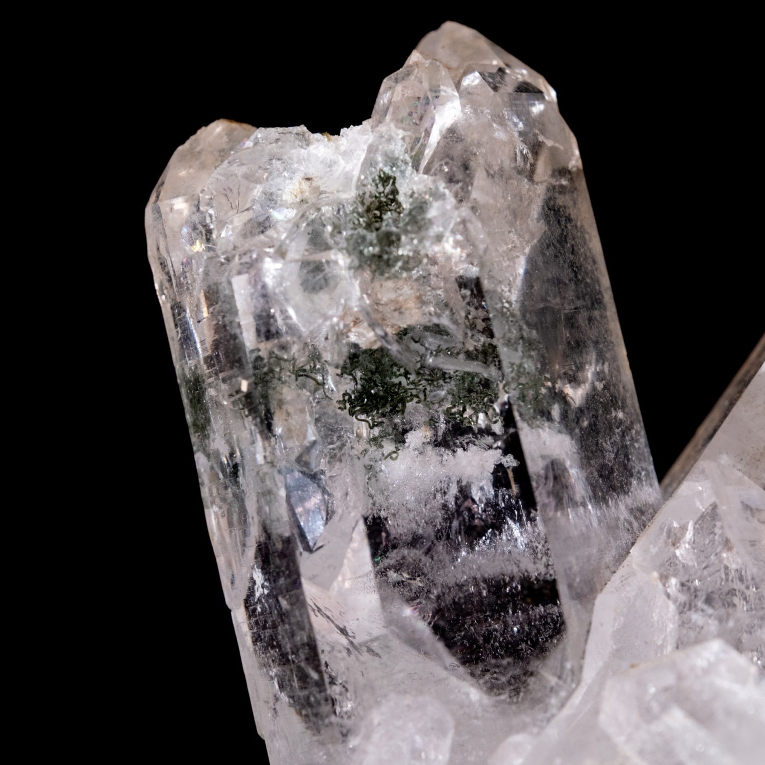 非常に透明度が高く、内包されたガーデンも模様もはっきり見え複雑に絡み合ったポイントの形状は非常に魅力的です。レインボーが見られる箇所や貫入部分も確認出来ます。