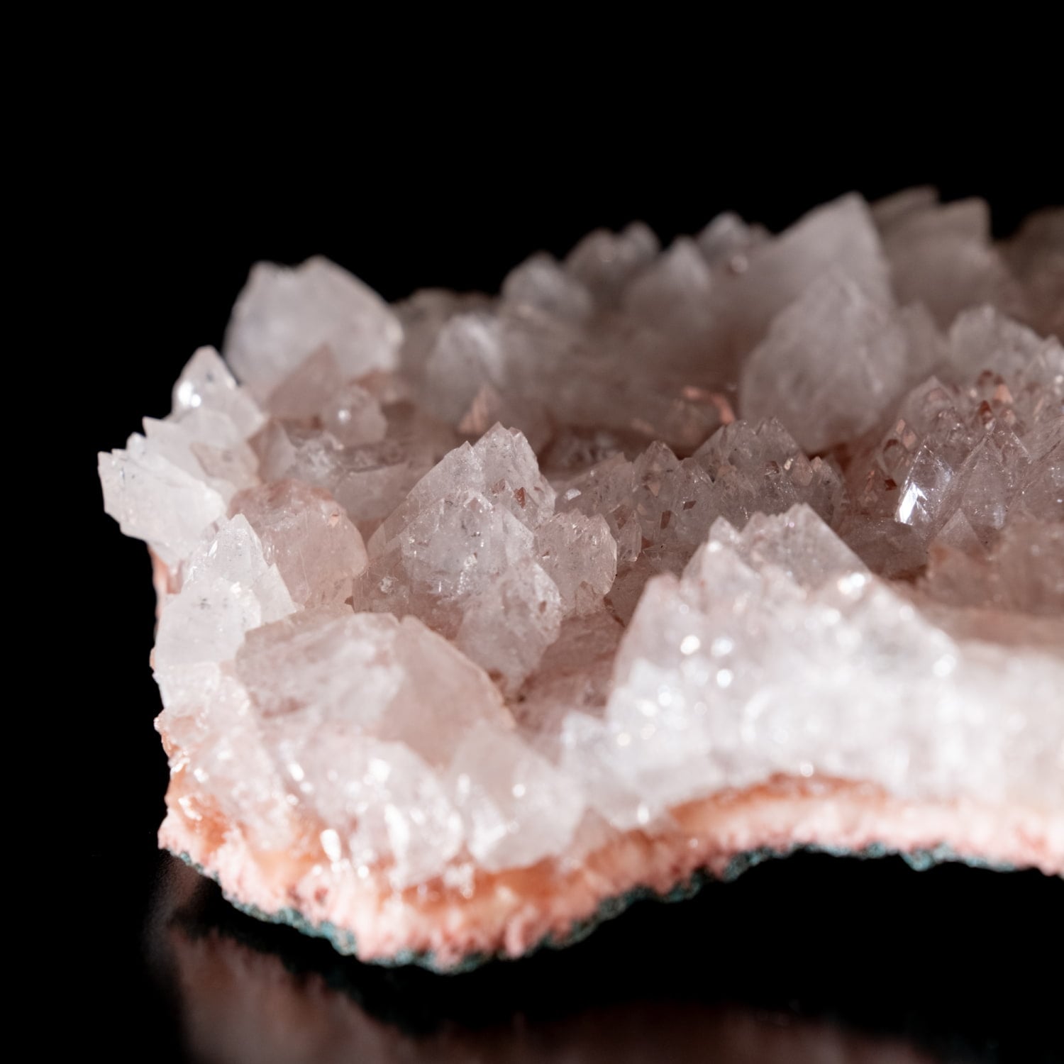 光の反射が非常にキレイで、母岩が薄く水晶の様な質感です。アポフィライトグループの中でも産出量が少なく、希少性の高い赤色の天然石です。