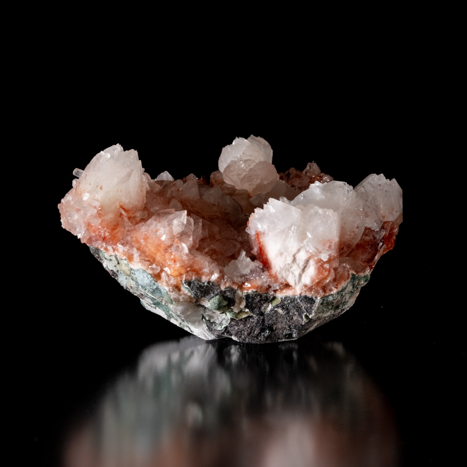 色合いの仕組み: 結晶の表面を覆った鉄分が、透明なアポフィライトを通して見えることで鮮やかな赤色を呈します。・主な産地: インド・マハラシュトラ州(アウランガーバード周辺など)が有名な産地です。