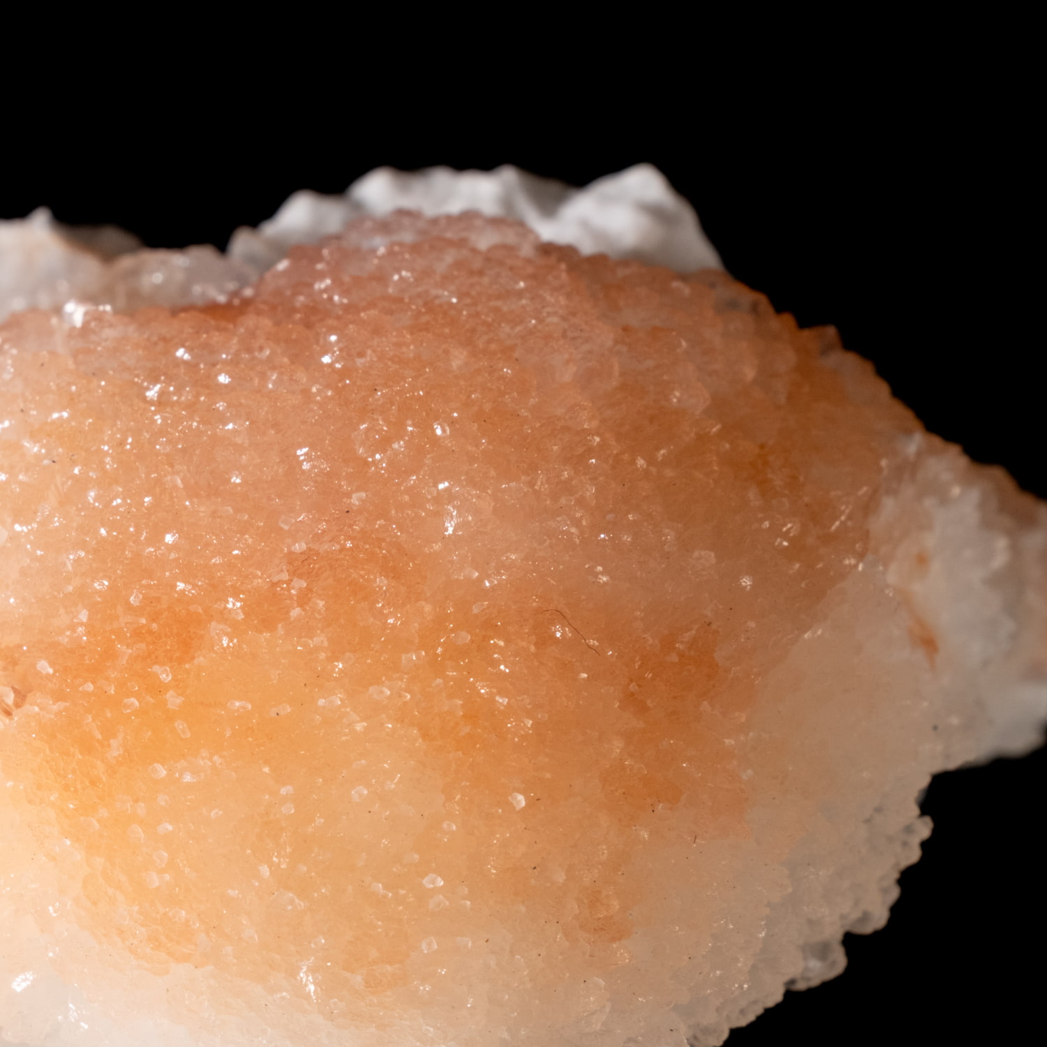 色合いの仕組み: 結晶の表面を覆った鉄分が、透明なアポフィライトを通して見えることで鮮やかな赤色を呈します。・主な産地: インド・マハラシュトラ州(アウランガーバード周辺など)が有名な産地です。
