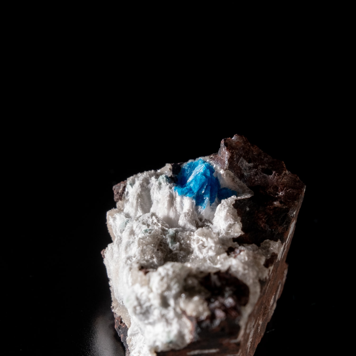 ・外観: 針状の結晶が放射状に成長し、母岩の上に「ポンポン」のような丸い球状クラスター(集合体)を作ります。白い沸石(スチルバイト等)を母岩として産出することが多く、青と白のコントラストが極めて美しいのが特徴です。