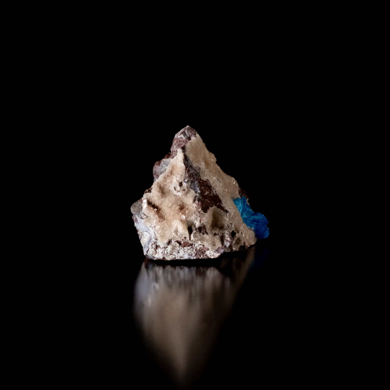 ・色合いの仕組み:成分に含まれるバナジウムに起因します。その色は「カバンサイト・ブルー」とも称されるほど、天然石の中でも類を見ない鮮やかなコバルトブルーを呈します。・主な産地:世界の産出量のほとんどがインド・マハラシュトラ州のプネー(プーナ)近郊に集中しており、非常に産地が限定された希少な鉱物です。