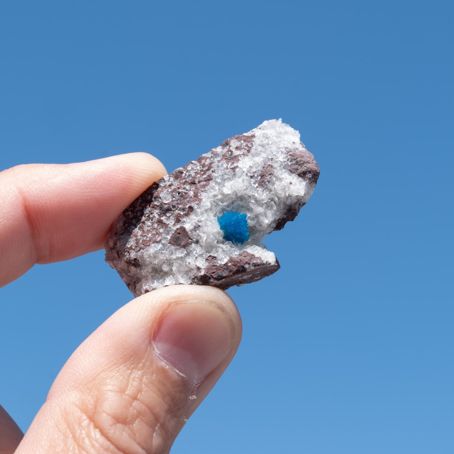 ・色合いの仕組み:成分に含まれるバナジウムに起因します。その色は「カバンサイト・ブルー」とも称されるほど、天然石の中でも類を見ない鮮やかなコバルトブルーを呈します。・主な産地:世界の産出量のほとんどがインド・マハラシュトラ州のプネー(プーナ)近郊に集中しており、非常に産地が限定された希少な鉱物です。