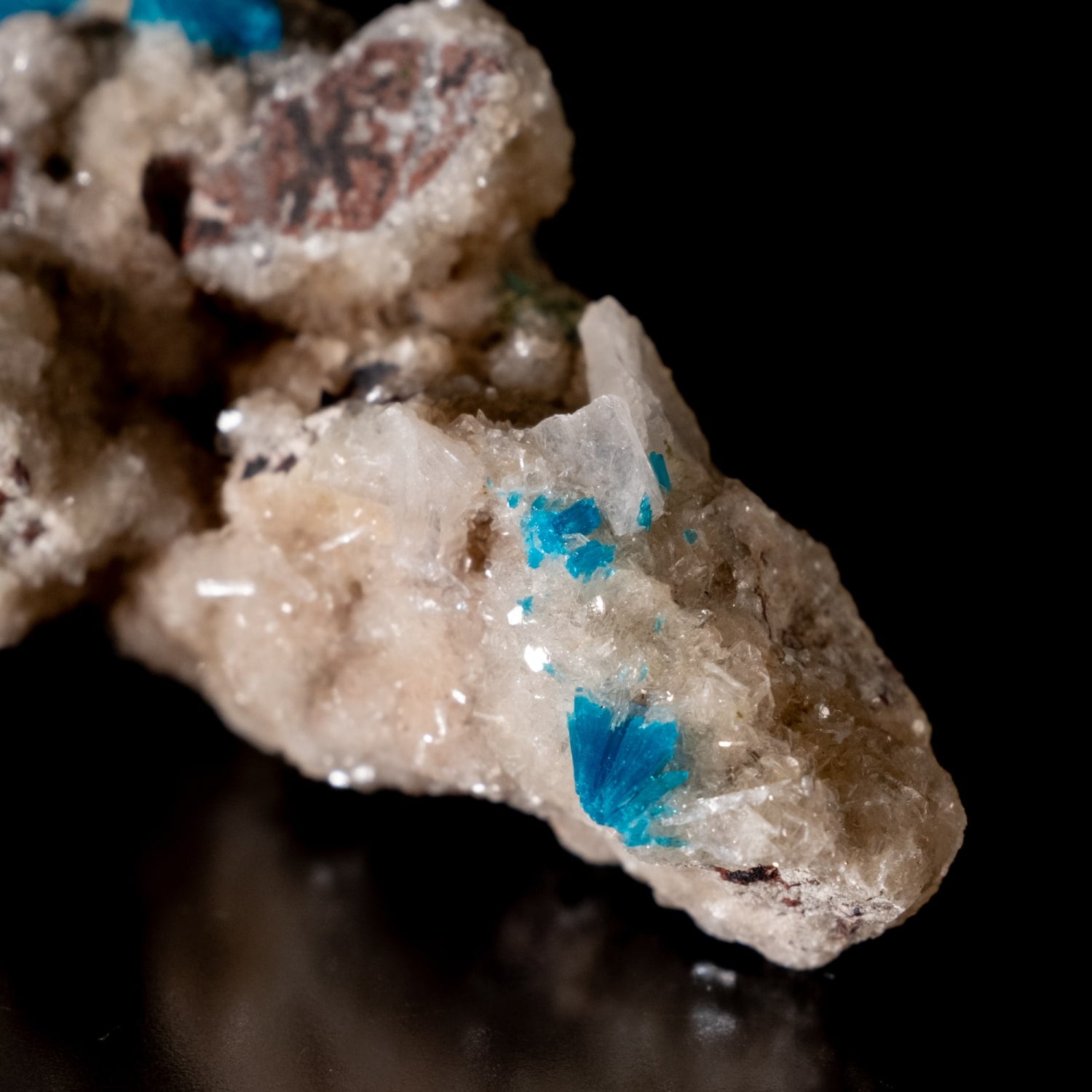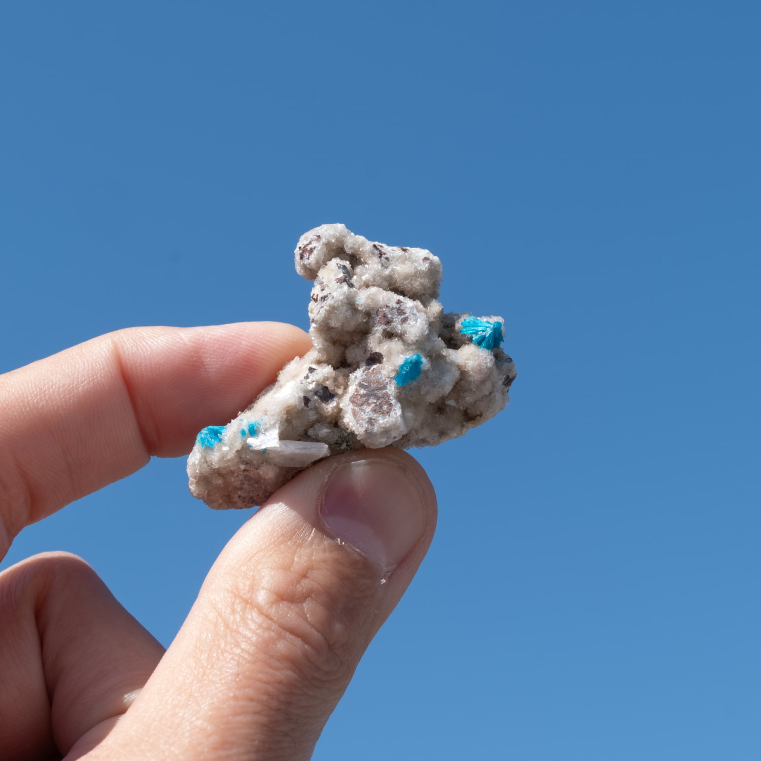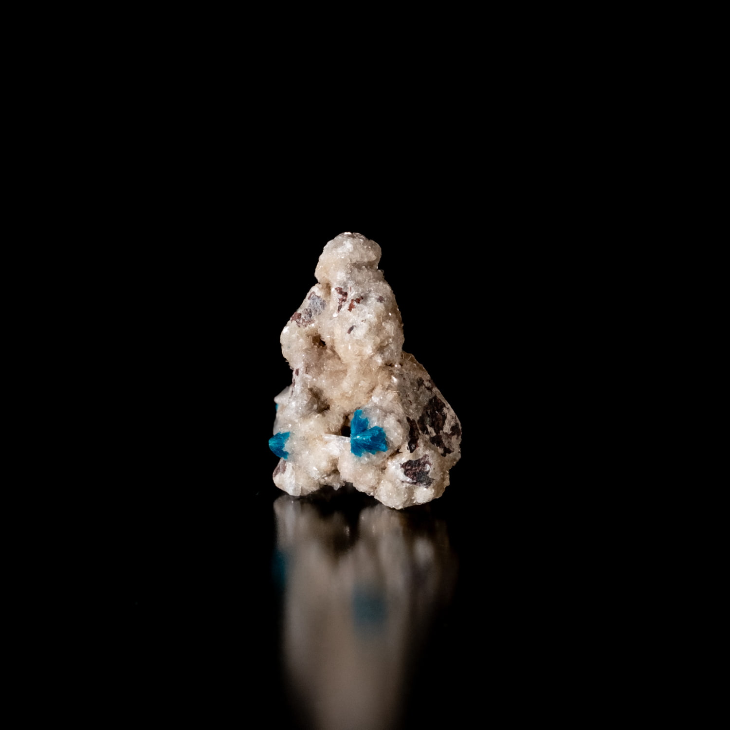 カバンサイトらしい濃いブルーが非常に美しく小ぶりな結晶が4箇所見られます。手ごろなサイズ感も非常に魅力的です。■【インド産カバンサイト:鮮烈な青を宿す奇跡の結晶】