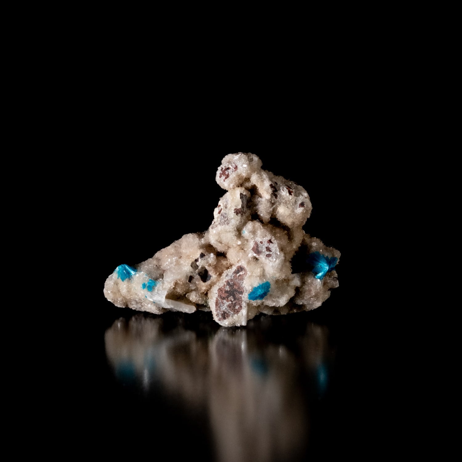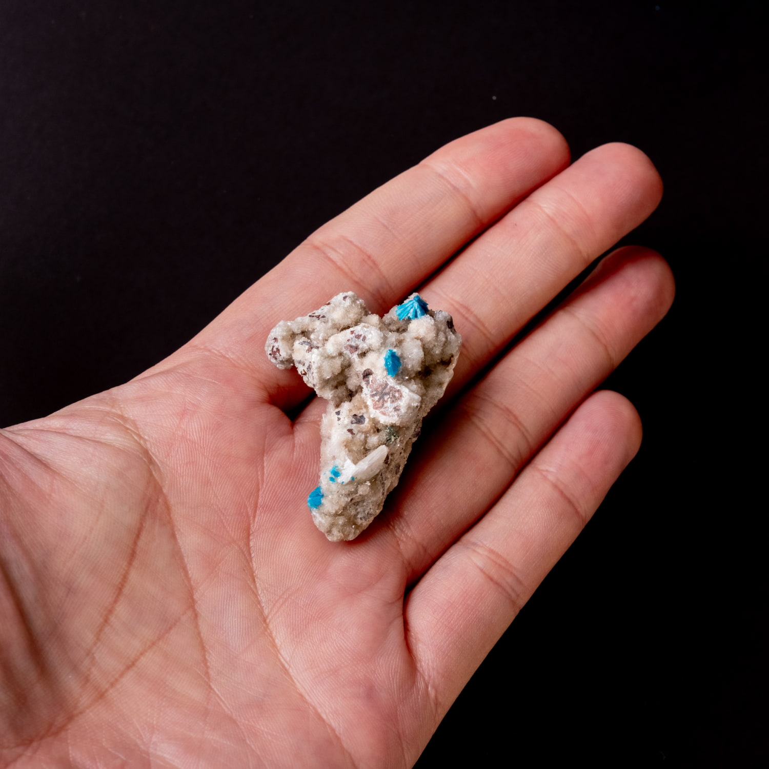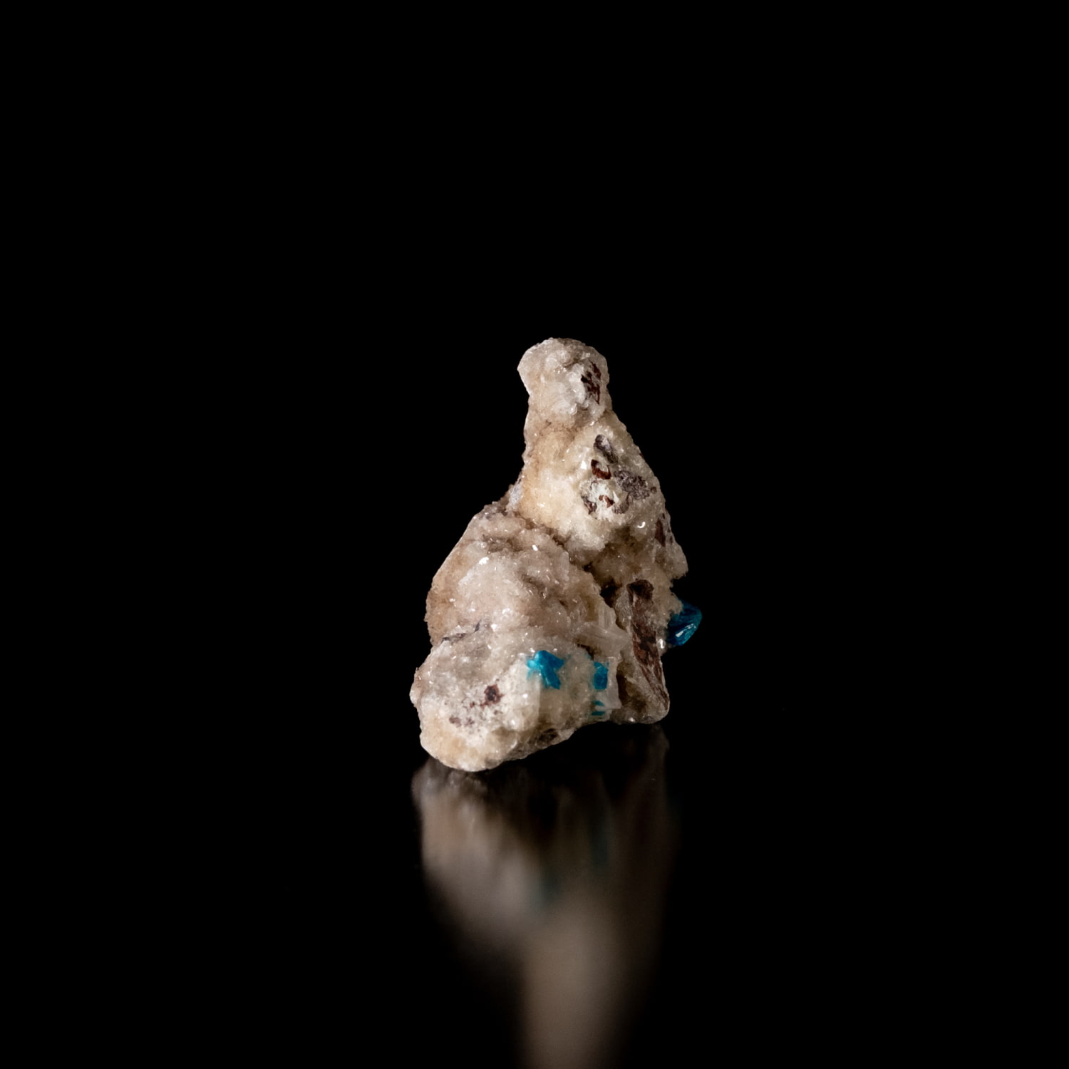 カバンサイトらしい濃いブルーが非常に美しく小ぶりな結晶が4箇所見られます。手ごろなサイズ感も非常に魅力的です。■【インド産カバンサイト:鮮烈な青を宿す奇跡の結晶】