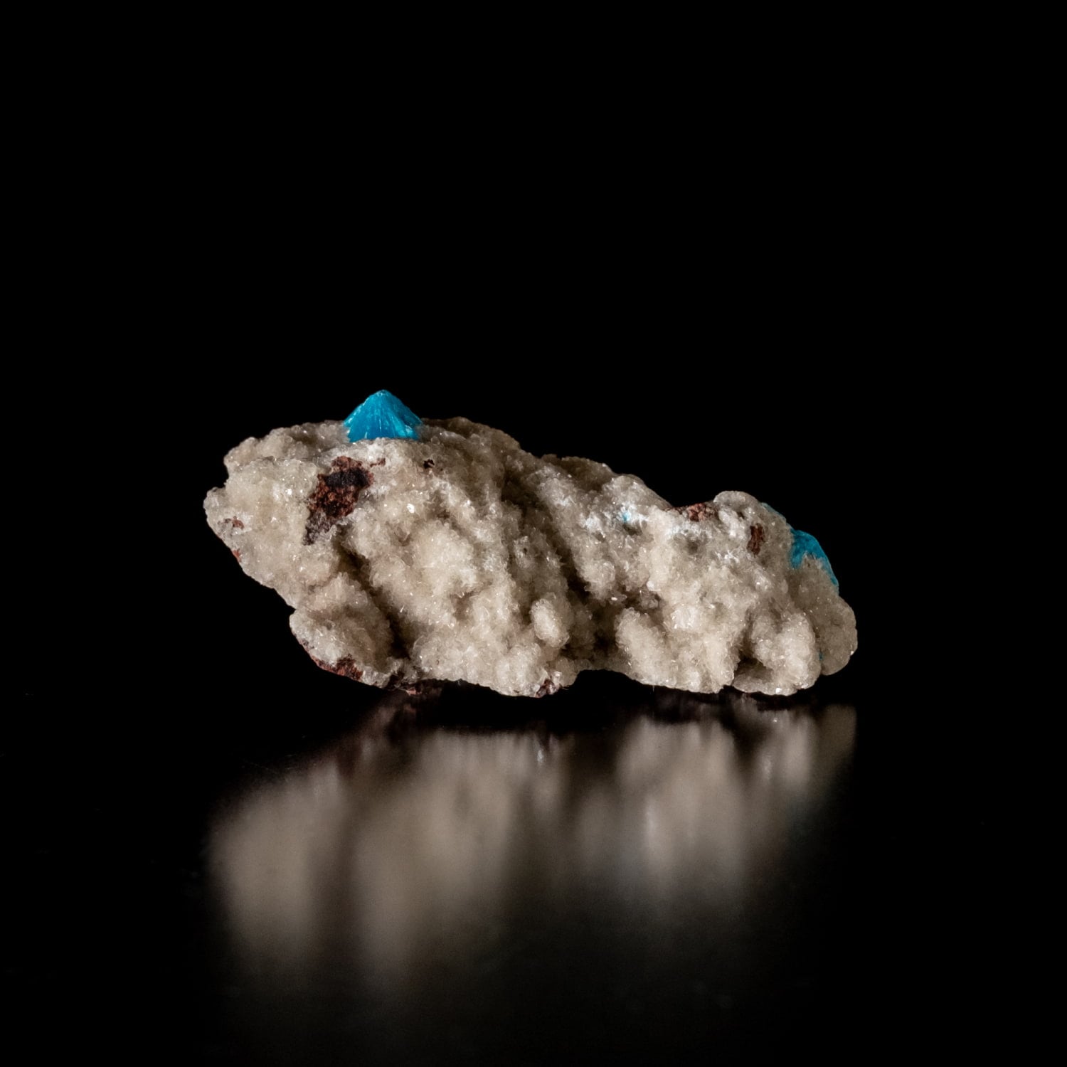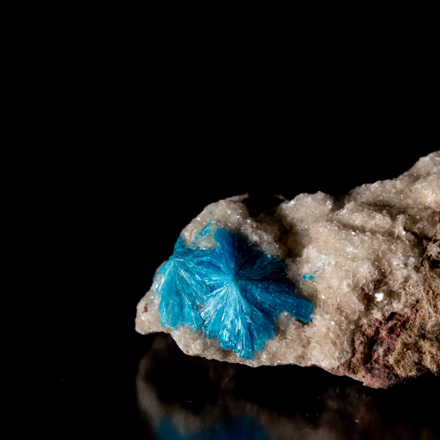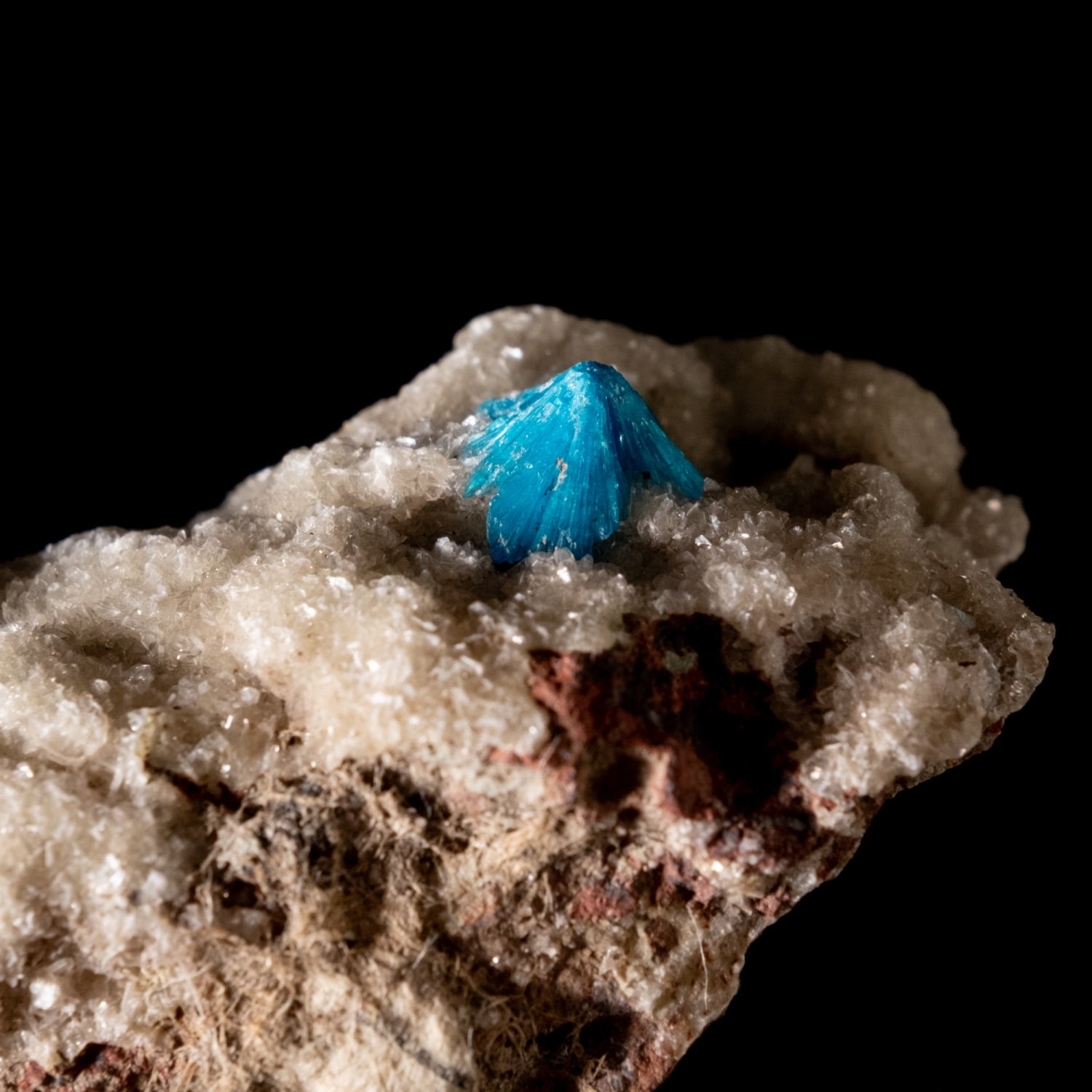 ・外観: 針状の結晶が放射状に成長し、母岩の上に「ポンポン」のような丸い球状クラスター(集合体)を作ります。白い沸石(スチルバイト等)を母岩として産出することが多く、青と白のコントラストが極めて美しいのが特徴です。