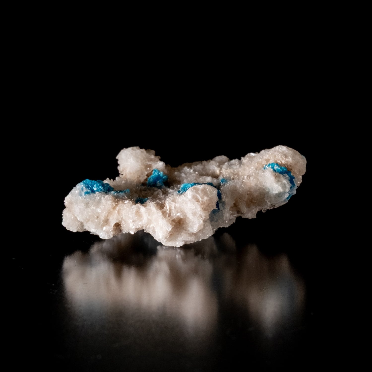 非常に繊細な構造を持つため、取り扱いには細心の注意が必要です。・脆さと硬度: モース硬度は3〜4と低く、衝撃を与えると結晶がポロポロと崩れやすい性質があります。また、長時間日光(紫外線)にさらすと退色する恐れがあるため、直射日光を避けて保管するのが理想的です。