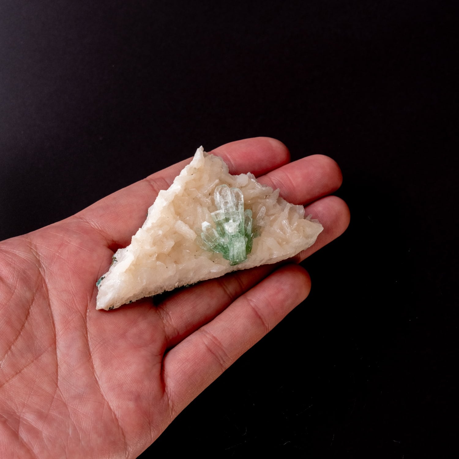 色合いの仕組み:結晶の格子欠陥や、微量に含まれるバナジウムが光を吸収・反射することで、透き通るような美しい緑色を呈します。主な産地:インド・マハラシュトラ州(アウランガーバード周辺など)が有名な産地です。
