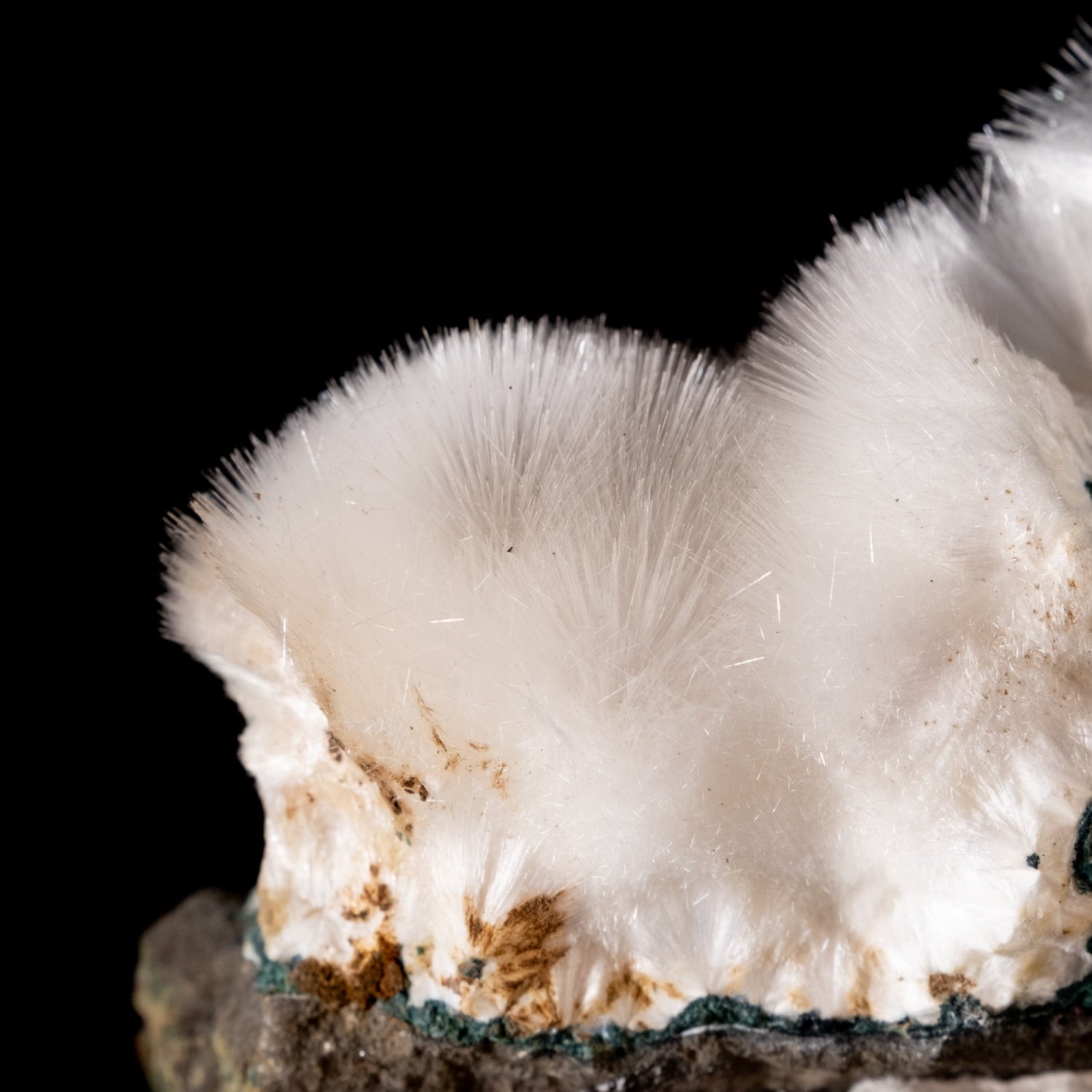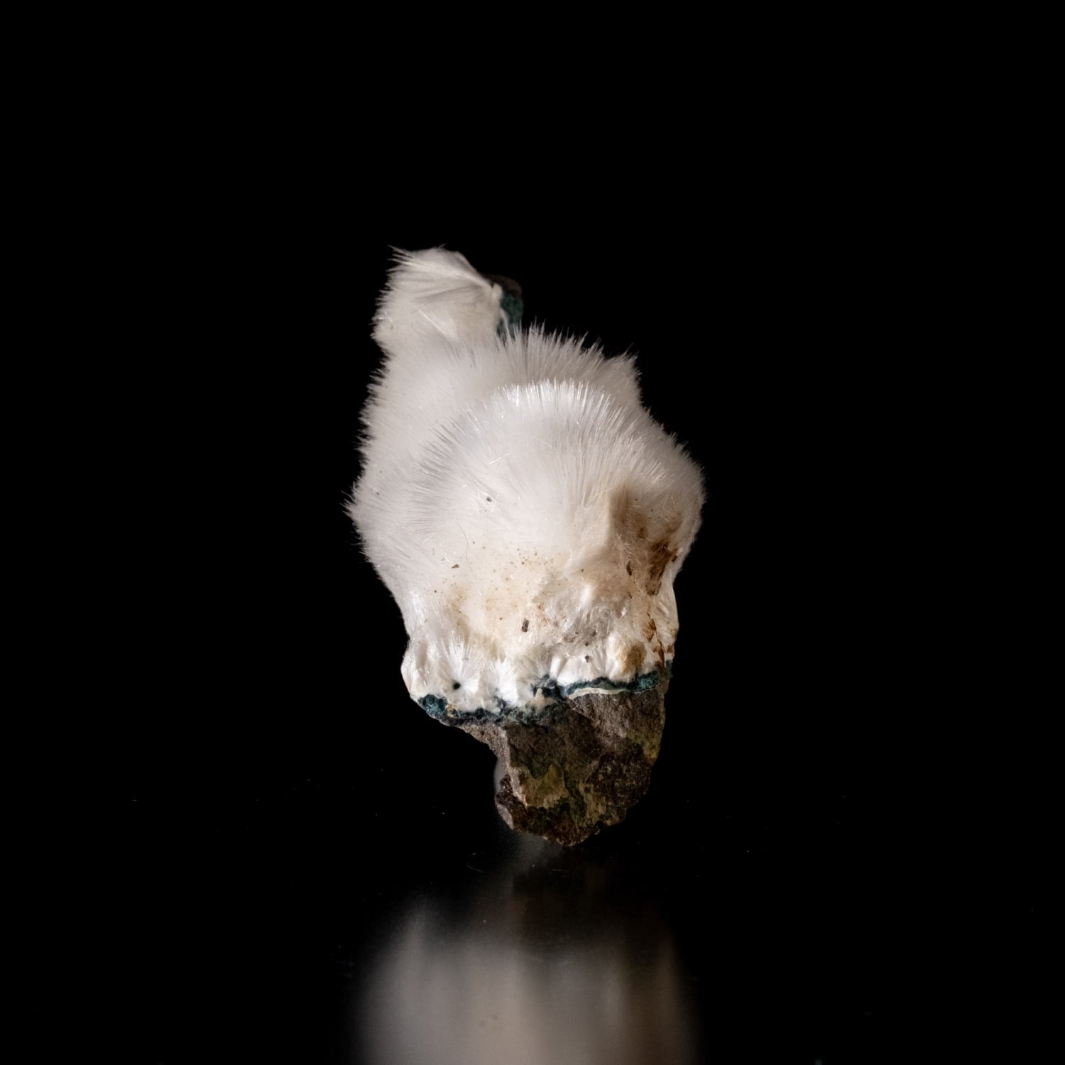 綿毛のような質感で鉱物マニアなら持っておきたい一品。非常に繊細なので取り扱いには十分注意してください。雪の結晶が降り積もったような放射状の針状結晶が、静謐で清らかな輝きを放っています。その繊細な姿は、見る者の心を穏やかに鎮める神秘的な美しさを湛えています。