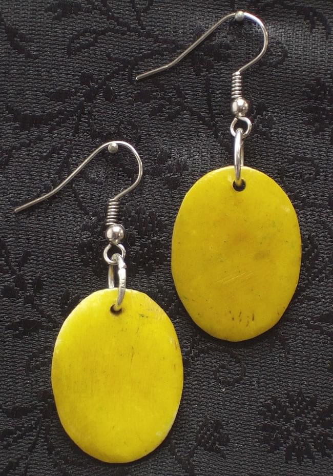 水牛の角を削って作られたエスニックな雰囲気のピアス。