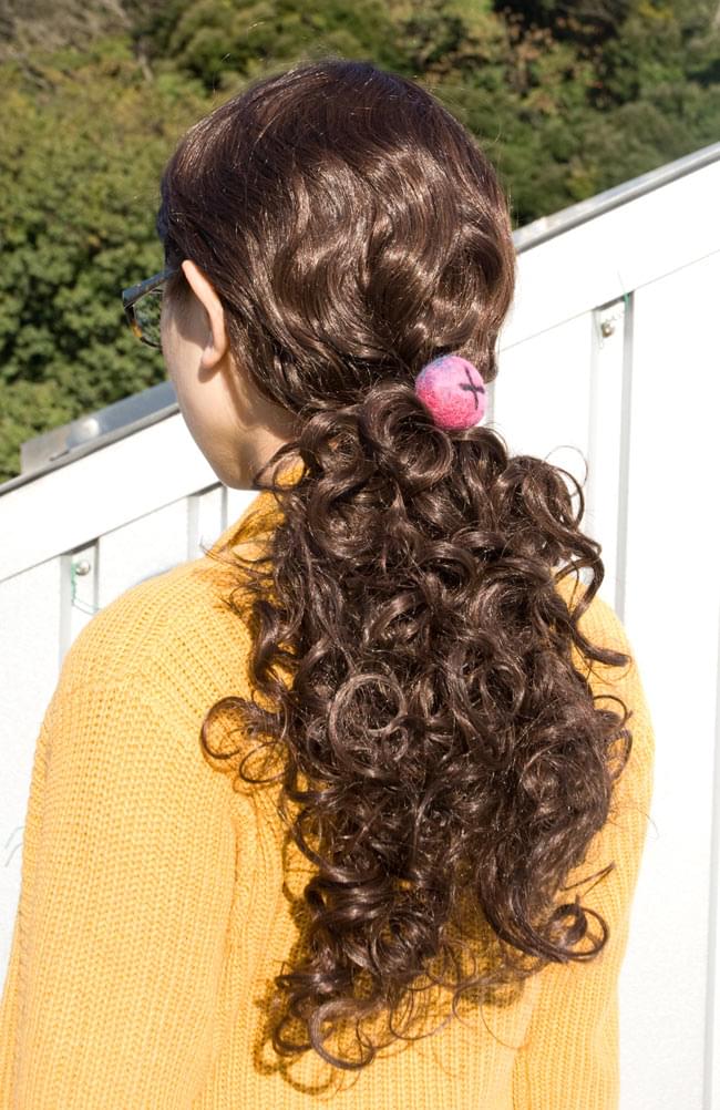 ヘアゴムなのでもちろん、髪をまとめるのにピッタリなのですが、腕にはめても、鞄につけても、ストールやマフラーを留めてもとっても可愛いです。使い方はあなた次第!色々お楽しみください。■ネパールの工場で生産工程を見てきました