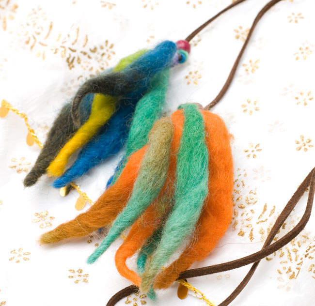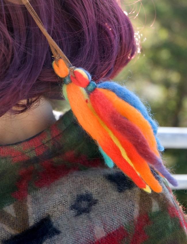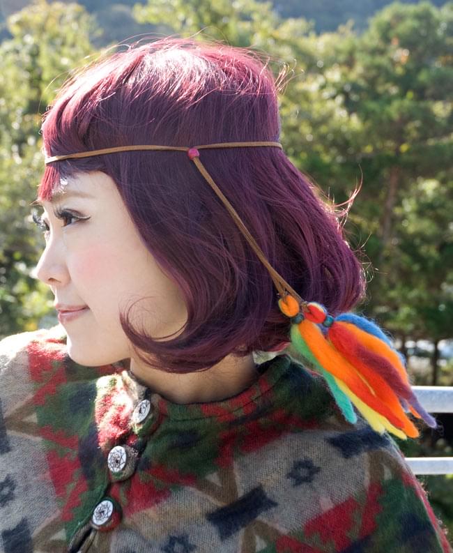 レザーとカラフルなフェルトのヘッドアクセです。しっかりボリュームのある作りは、個性的なファッションにピッタリです!ヒッピースタイルやフォークロアのスタイルにぴったりはまりそうです。■使い方はあなた次第!■