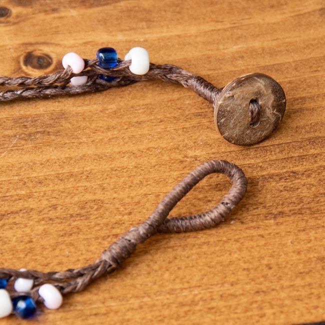 ビーズで編まれたアンクレットは、抜群の華やかさはないまでも、程よいエスニック感が素敵な一品です。コーディネートを邪魔しないシンプルなデザインなので、デイリーユーズにピッタリ!女性にはアンクレットサイズになりますが、男性だったらブレスとしてもお使いいただけます。また、手作りのため、ビーズの色味がひとつひとつ異なります。大体のお色味で分けておりますので、6枚目の写真をご参照下さい。
