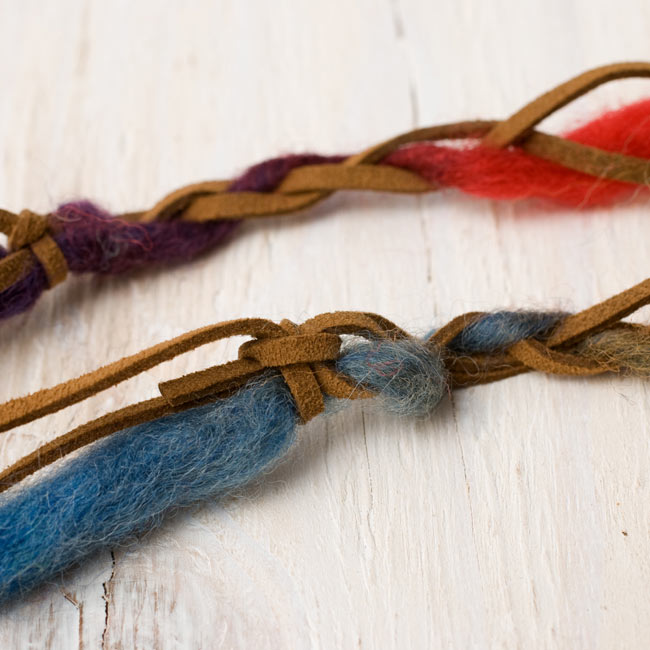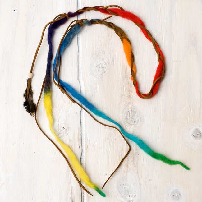 レザーとカラフルなフェルトのヘッドアクセです。カラフルなフェルトと、レザーのシンプルな作りですが、ヒッピースタイルやフォークロアのスタイルにぴったりはまりそうです。■使い方はあなた次第!■