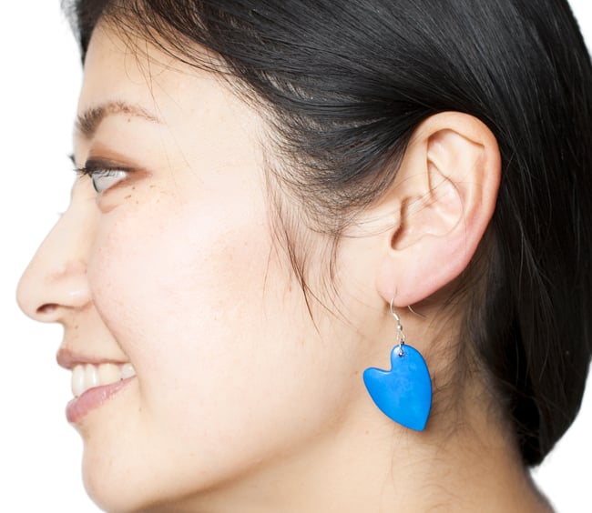 水牛の角を削って作られたいかにもエスニックな雰囲気のピアス。独特の光沢感と素材感が耳元を印象的に飾りだしてくれます。