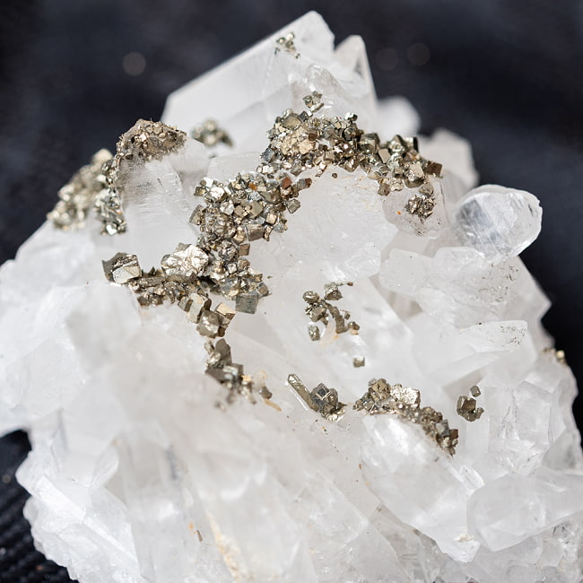 水晶の上に、パイライトが輝く