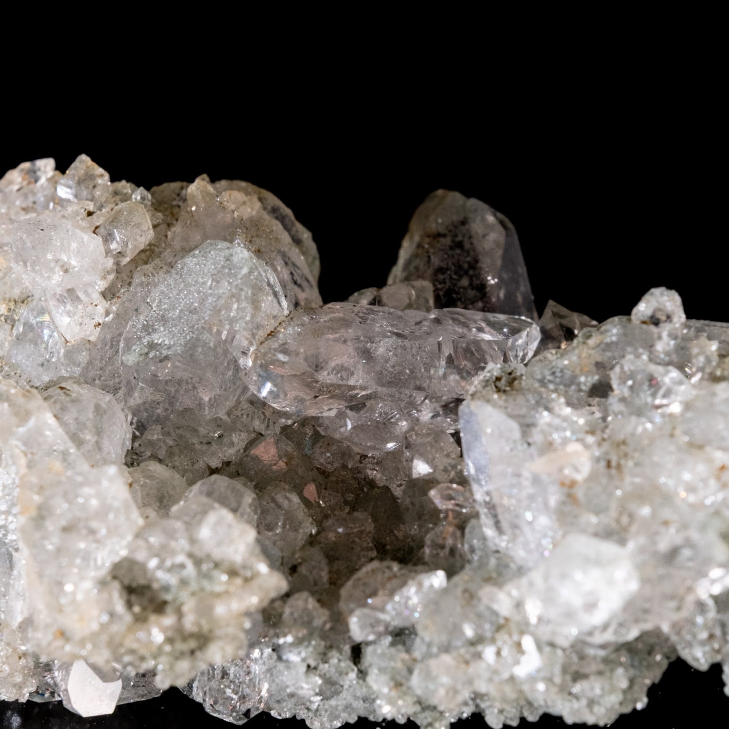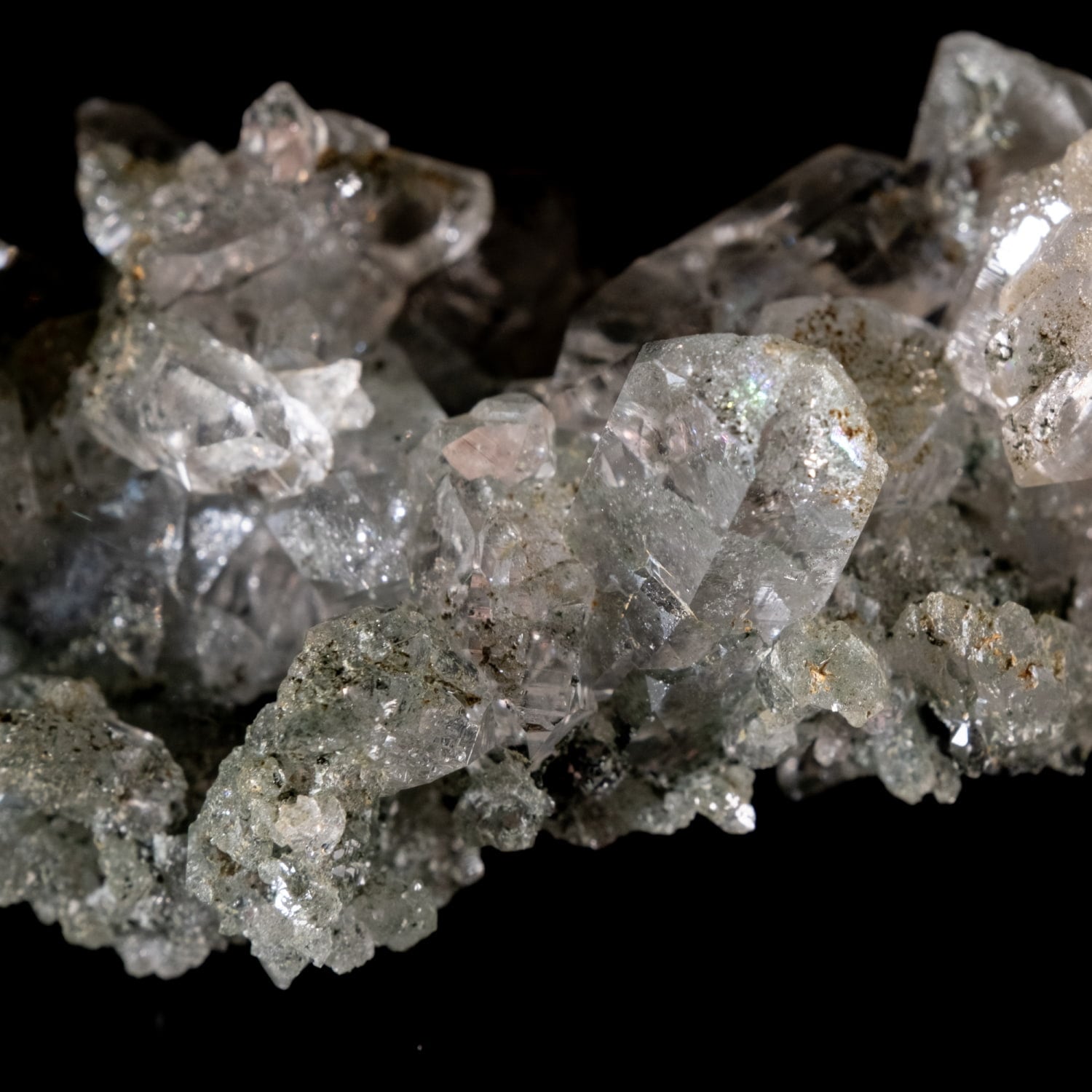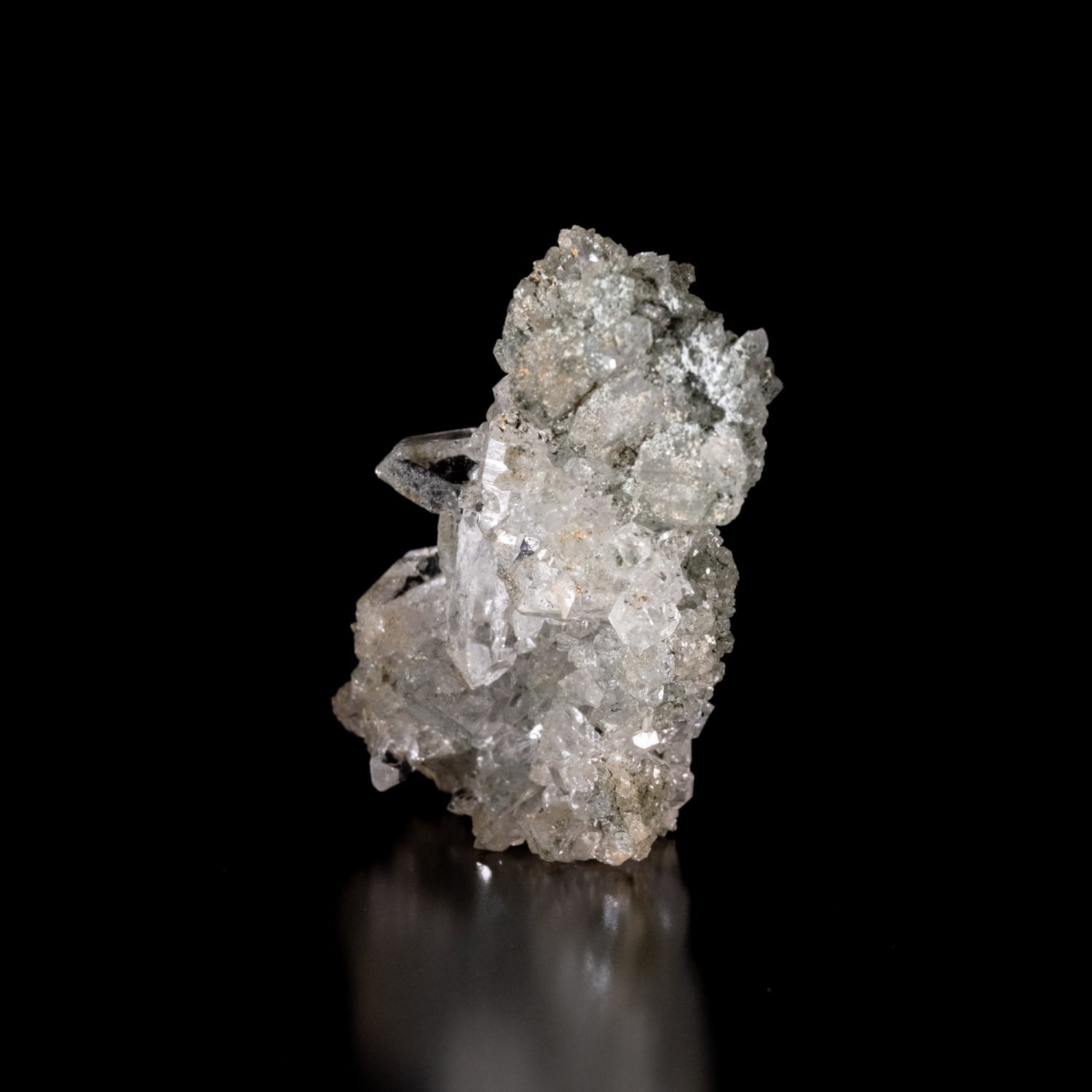 ・多様な表情: 緑色のクローライト(緑泥石)、黒色のアナテース(鋭錐石)、金色のルチル(金紅石)などが含まれる、個性豊かな結晶が見られます。