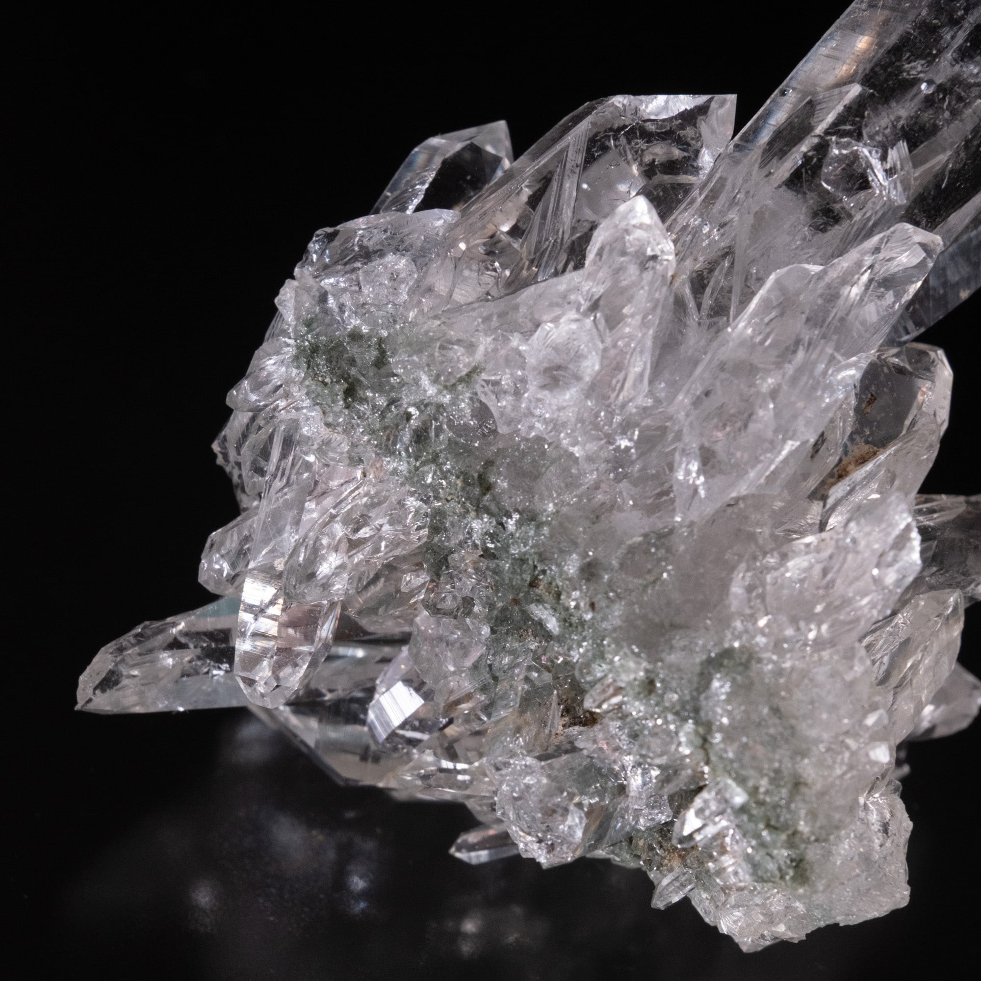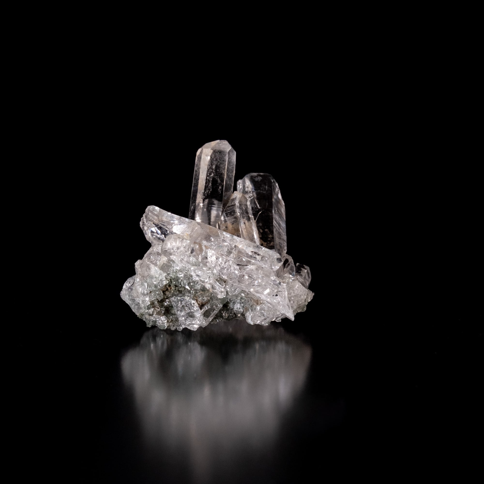 ・多様な表情: 緑色のクローライト(緑泥石)、黒色のアナテース(鋭錐石)、金色のルチル(金紅石)などが含まれる、個性豊かな結晶が見られます。