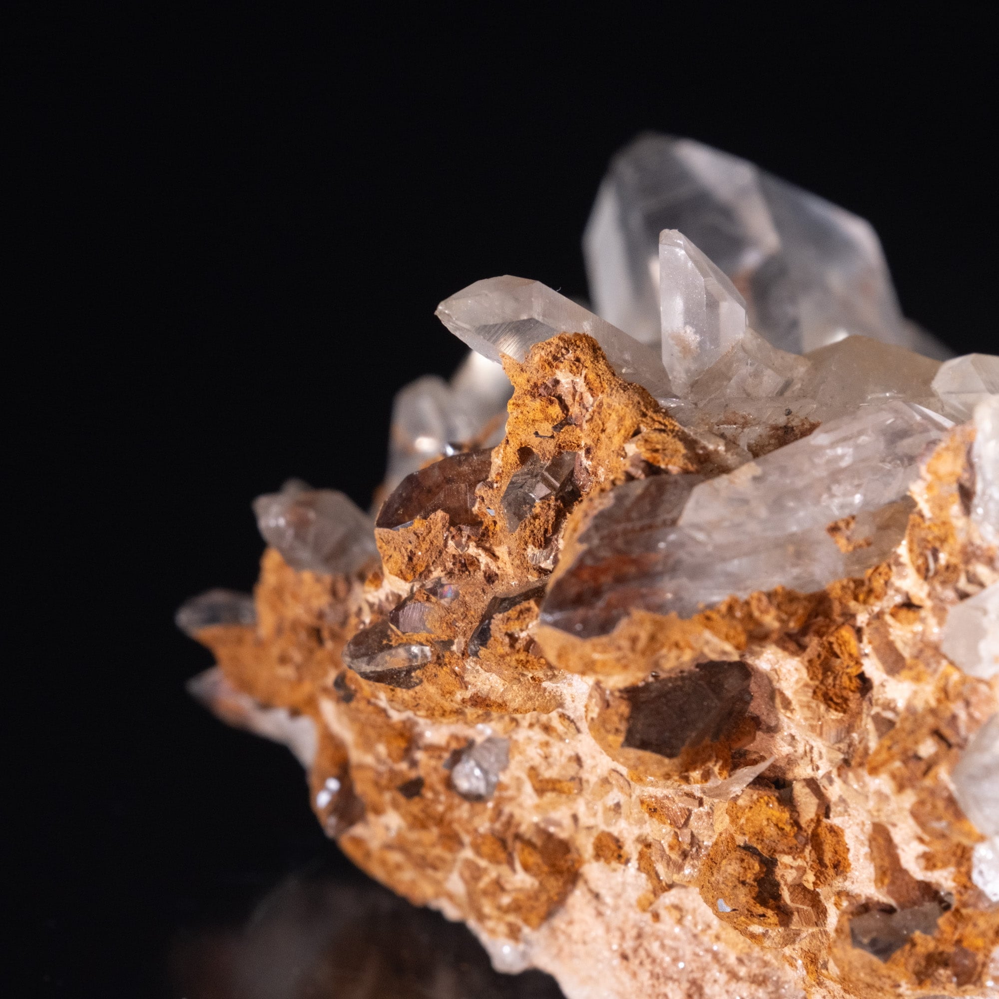・多様な表情: 緑色のクローライト(緑泥石)、黒色のアナテース(鋭錐石)、金色のルチル(金紅石)などが含まれる、個性豊かな結晶が見られます。
