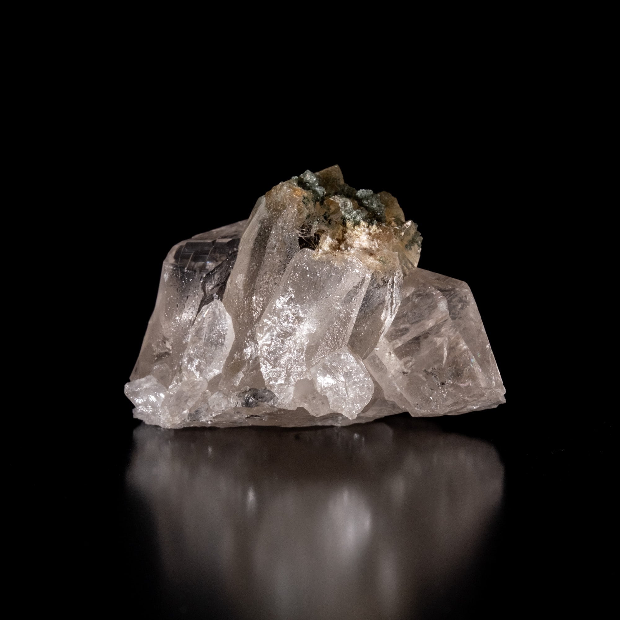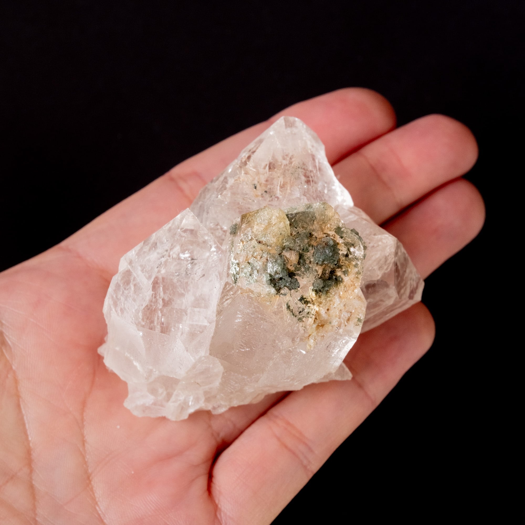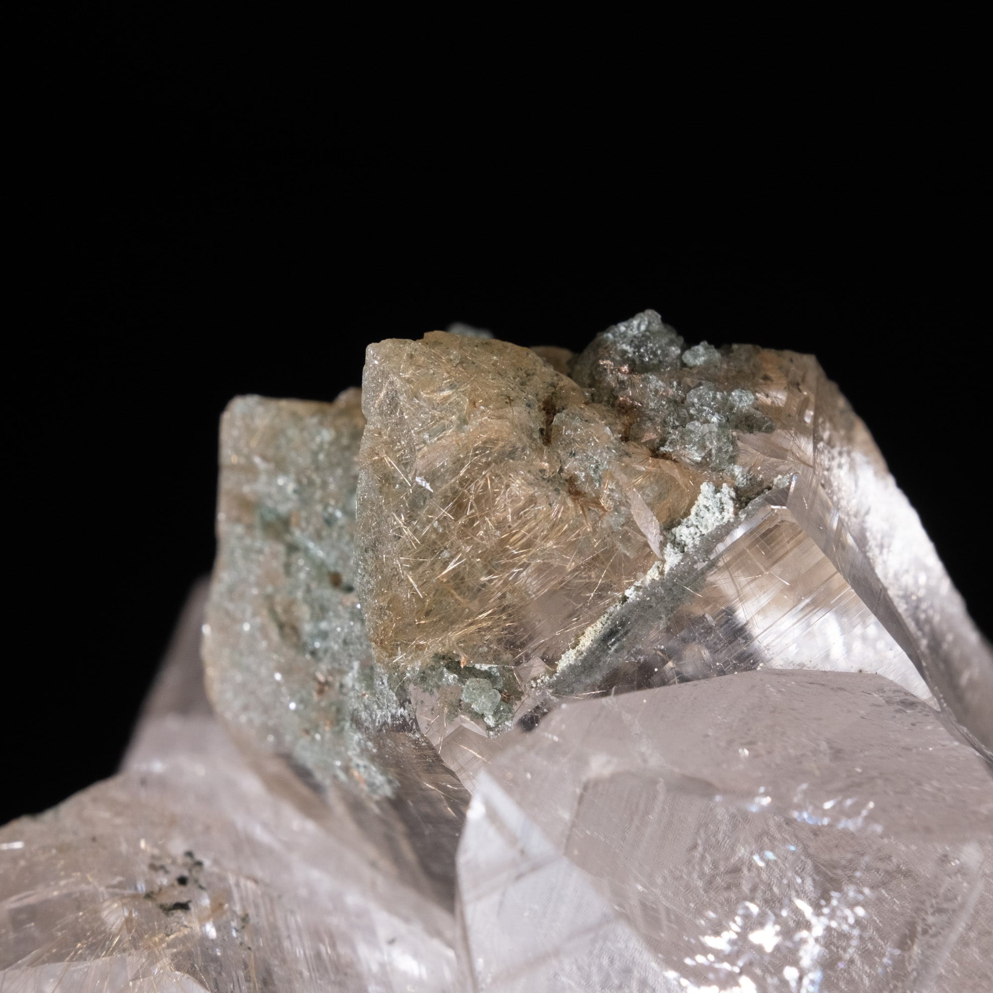・多様な表情: 緑色のクローライト(緑泥石)、黒色のアナテース(鋭錐石)、金色のルチル(金紅石)などが含まれる、個性豊かな結晶が見られます。