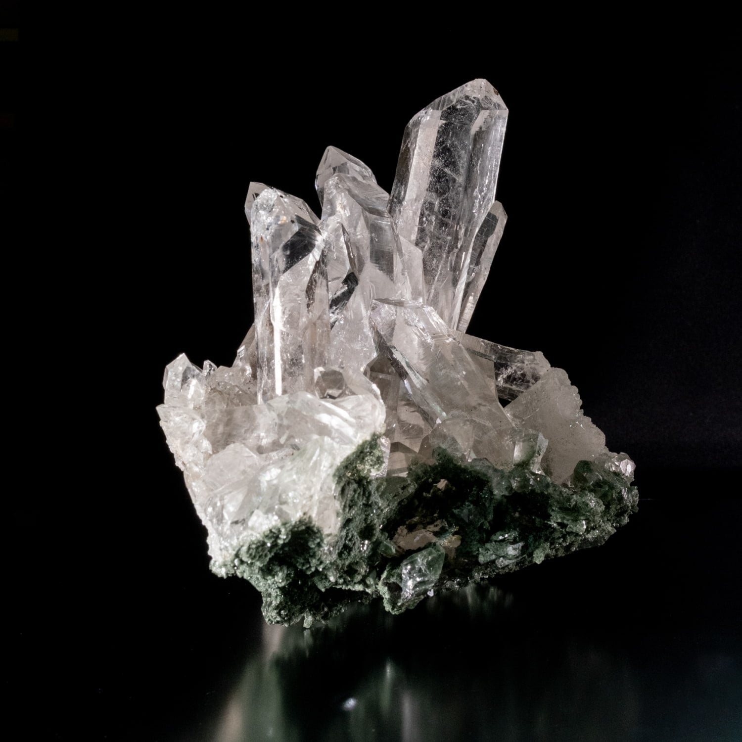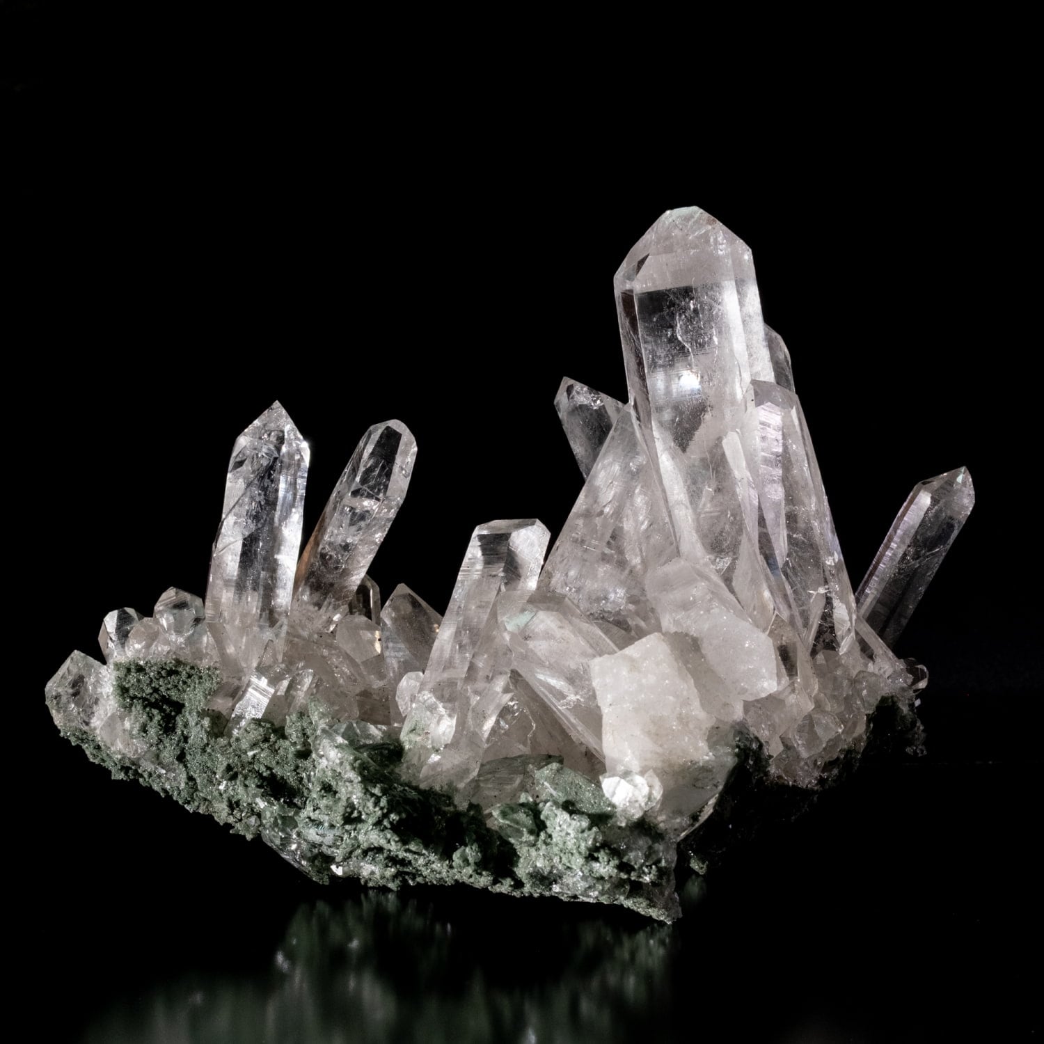 抜群の透明度で天然のクラックがまるで氷の様な質感のポイントが多いクラスターです。母岩が非常に薄く純粋に水晶のみの重量ととってもいいと思います。迫力と唯一無二の存在感は鉱物好きな方でなくてもお分かり戴けると思います。