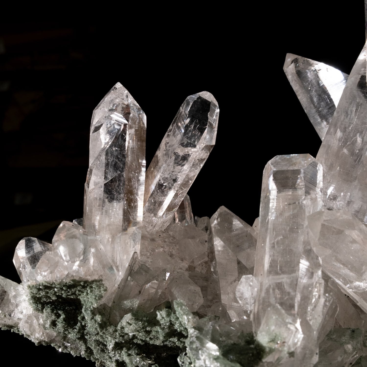 ・多様な表情: 緑色のクローライト(緑泥石)、黒色のアナテース(鋭錐石)、金色のルチル(金紅石)などが含まれる、個性豊かな結晶が見られます。