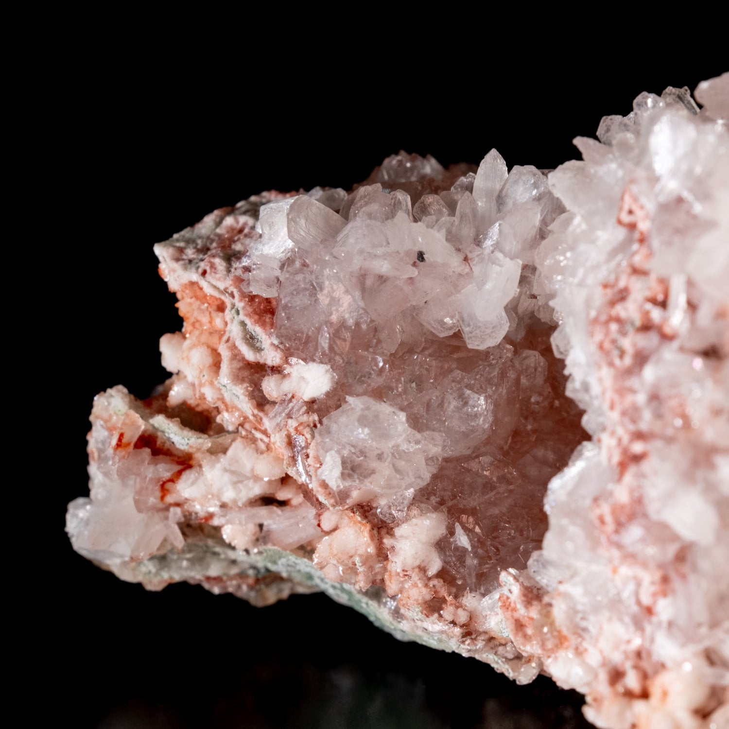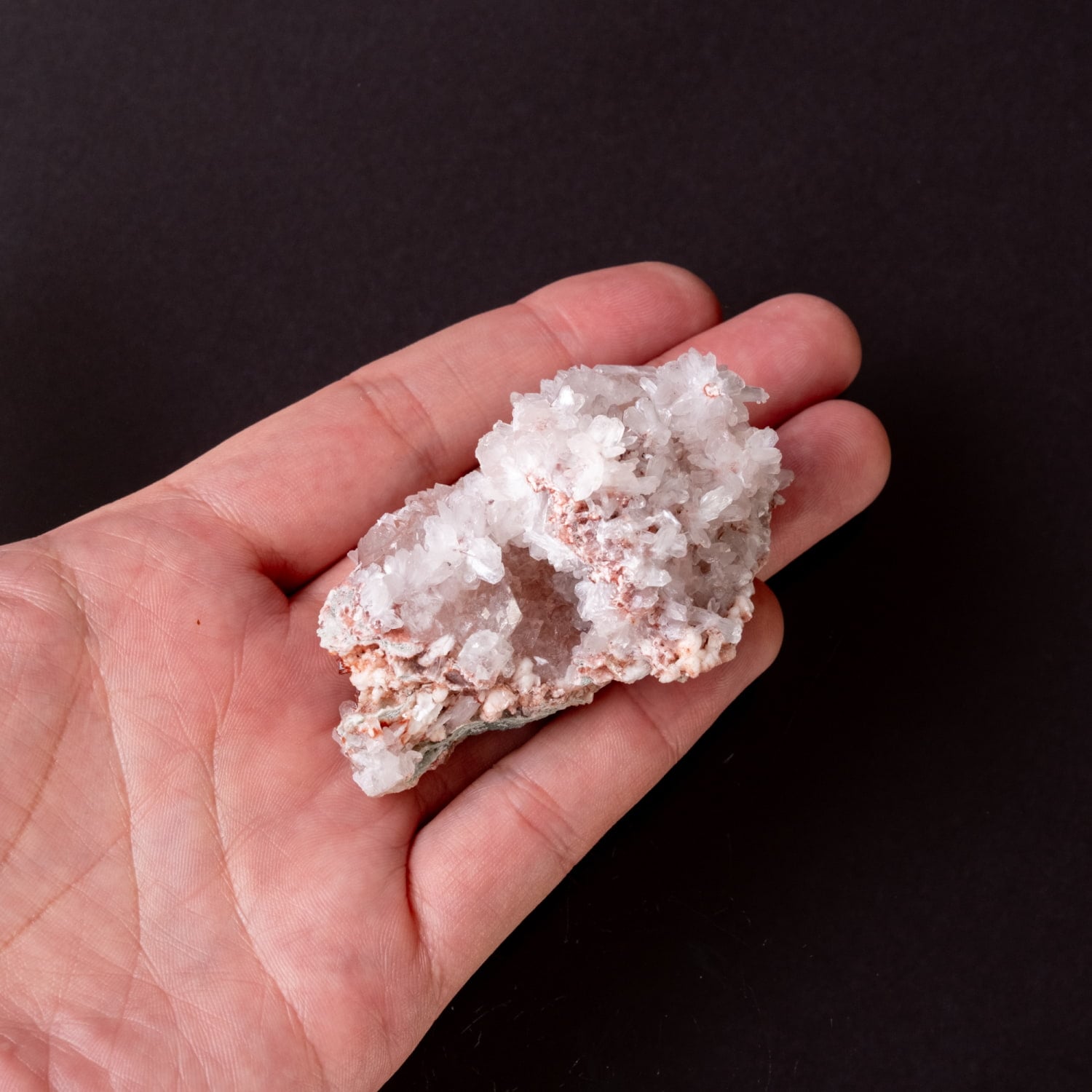 細かい結晶でボリュームがあり、赤の質感も相まってまるでサンゴの様な見た目が非常にキレイです。アポフィライトグループの中でも産出量が少なく、希少性の高い赤色の天然石です。
