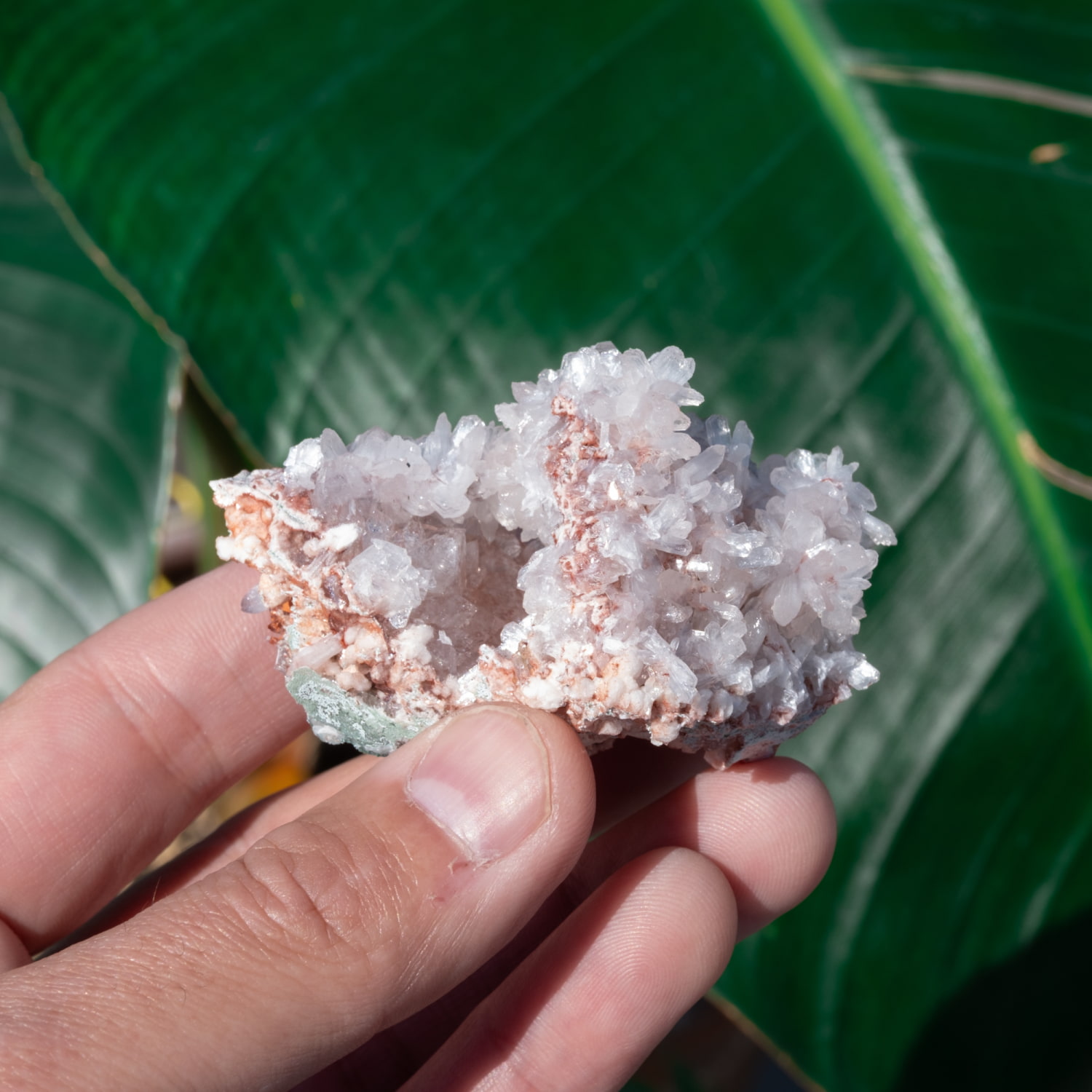 色合いの仕組み: 結晶の表面を覆った鉄分が、透明なアポフィライトを通して見えることで鮮やかな赤色を呈します。・主な産地: インド・マハラシュトラ州(アウランガーバード周辺など)が有名な産地です。