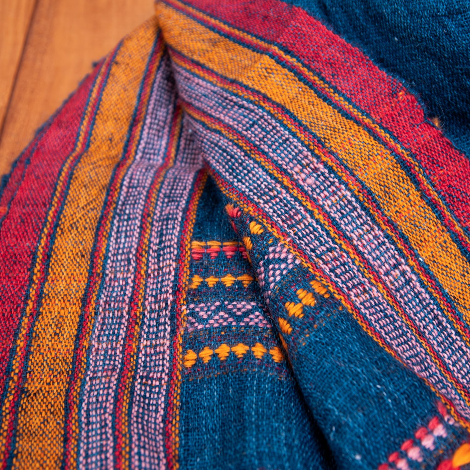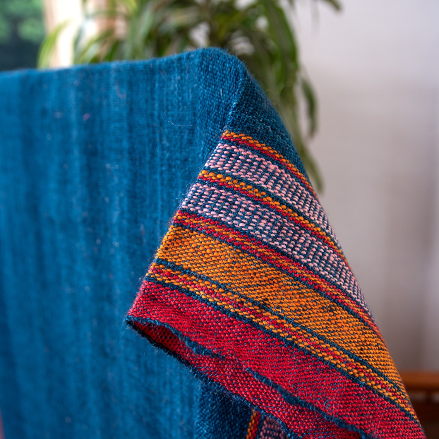 柔らかな起毛で温まる トライバル柄の機織りストール