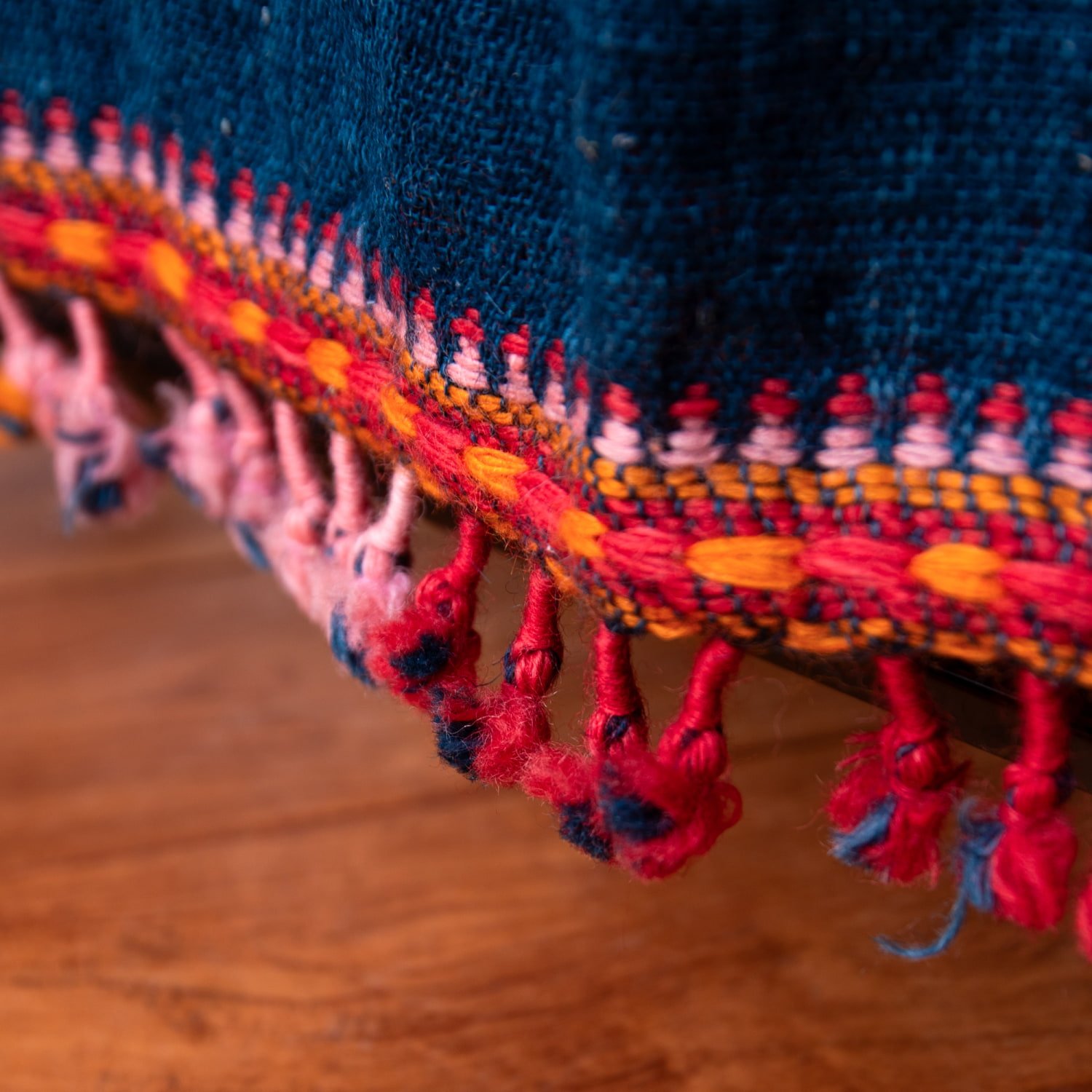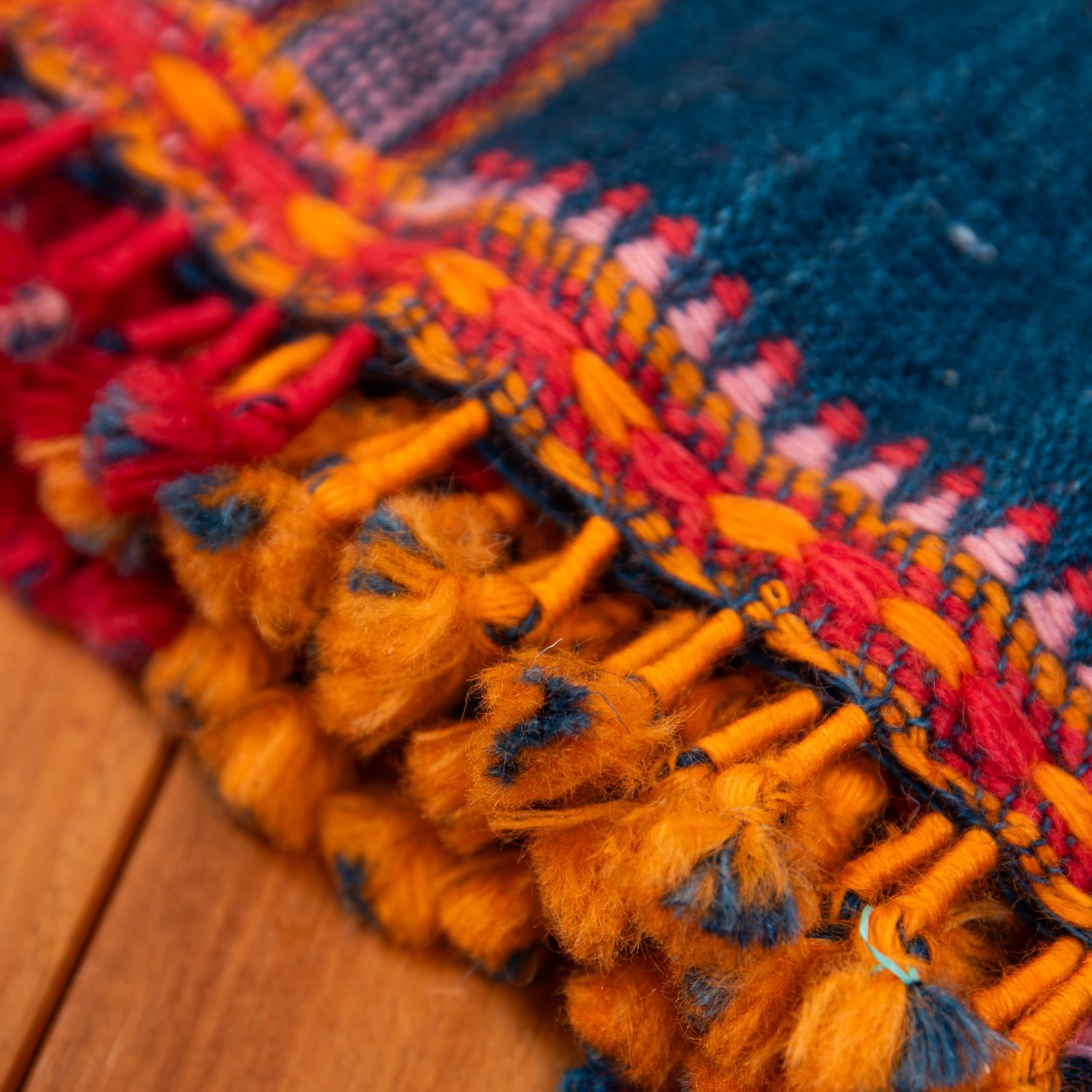 色合いや細かな刺繍が美しいショール。シンプルな服に合わせて羽織ったり、お部屋でひざ掛けとして使用しても◎。とても美しいデザインなので、お部屋に置いておくだけでもインテリアの1部としてお楽しみいただけると思います。