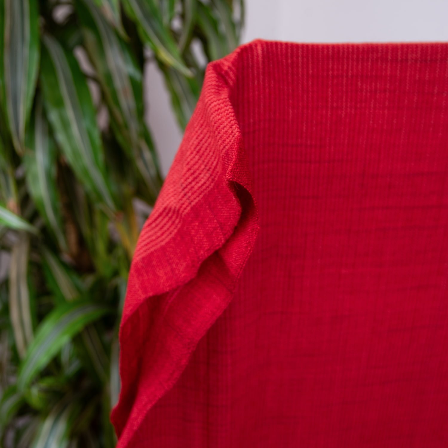こちらの商品の白い装飾部分は、タッサーシルクで織られています。また、染料には、ヘナとターメリックという自然染料を使用しています。
