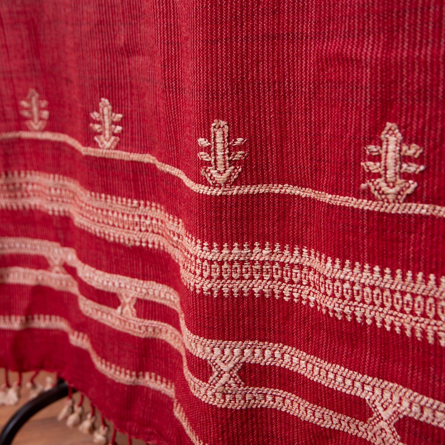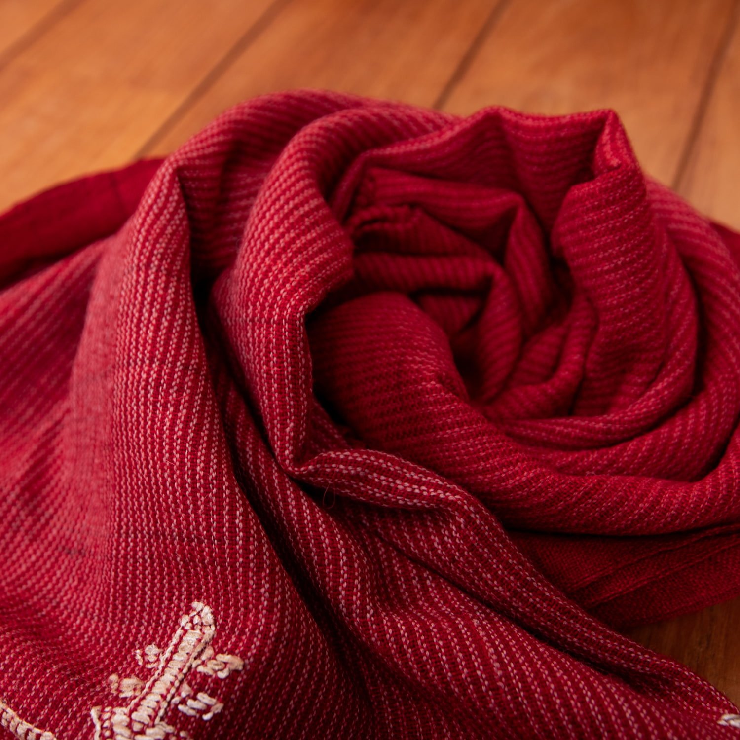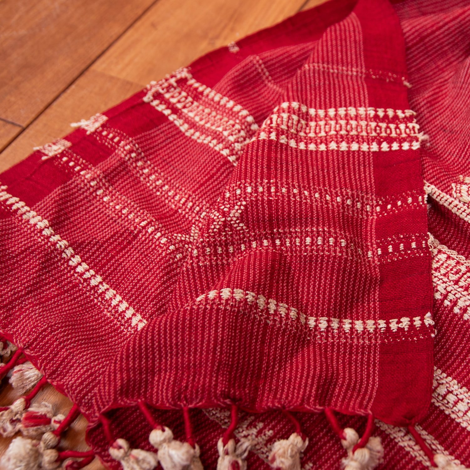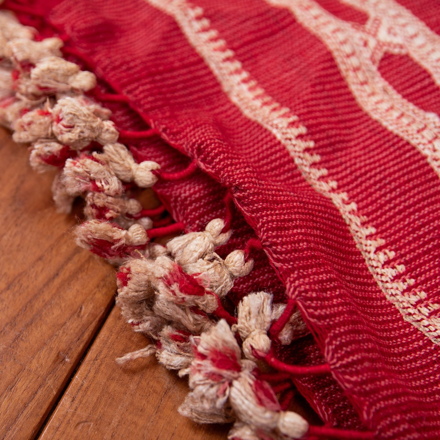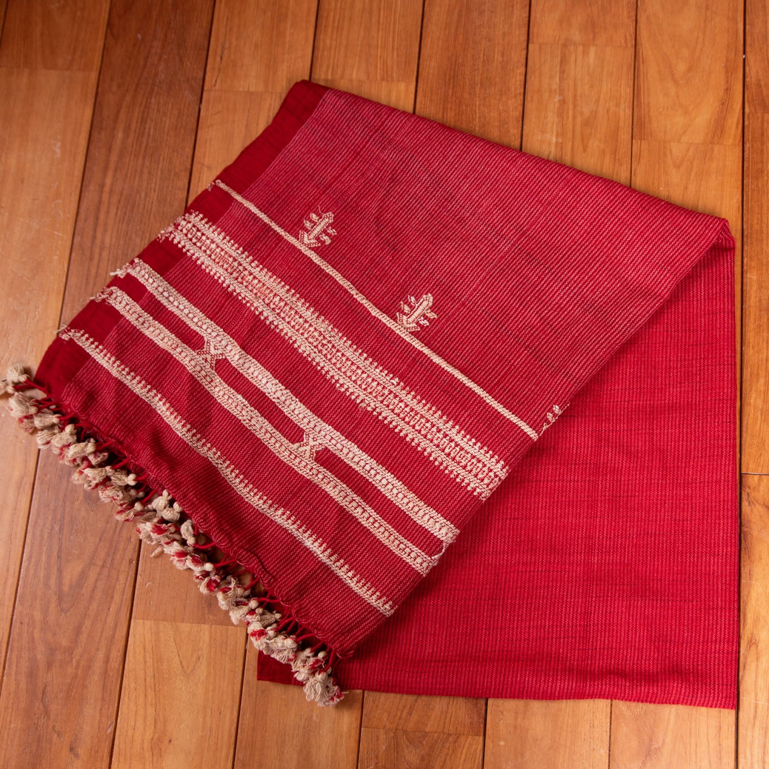 柔らかな起毛で温まる トライバル柄の機織りストール