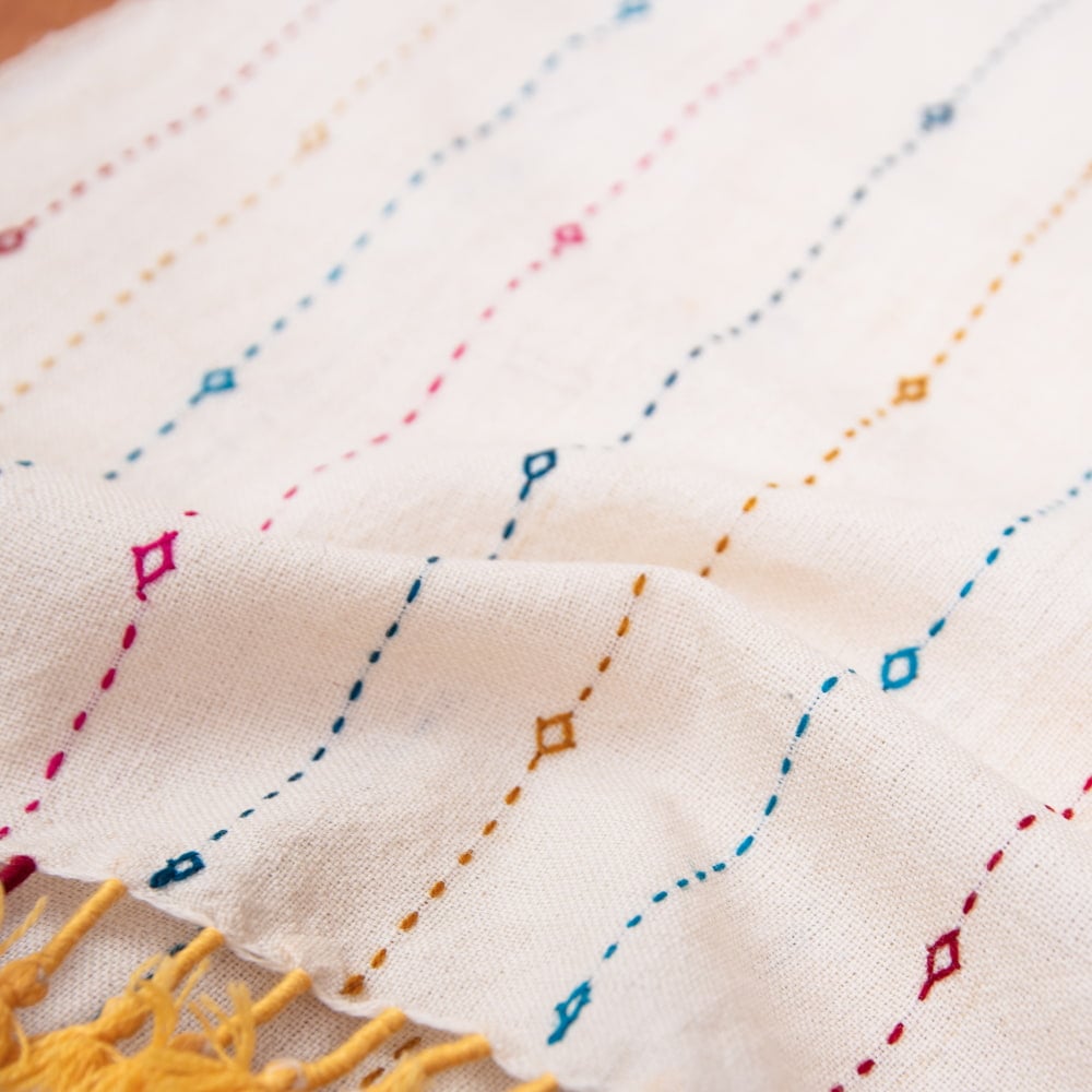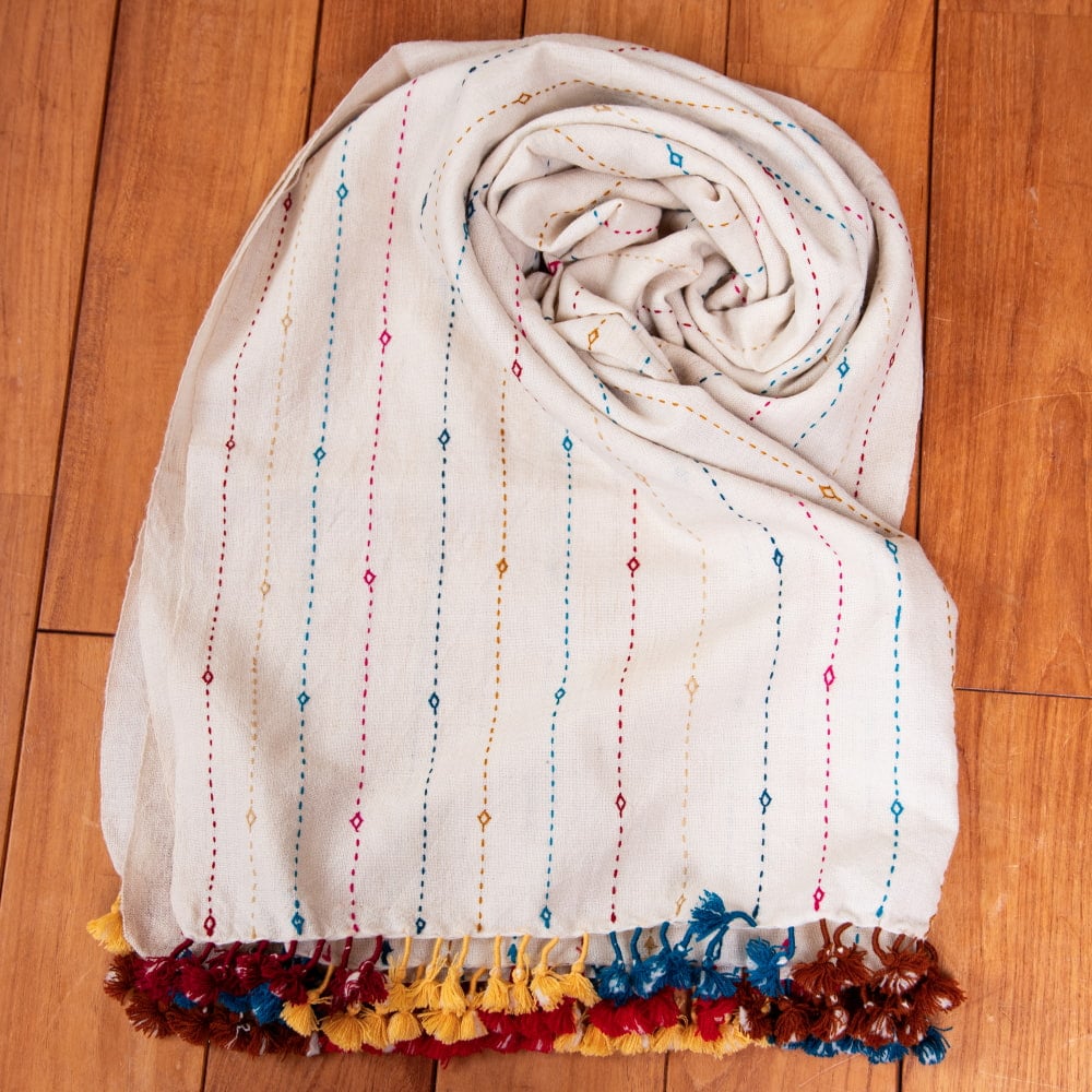 柔らかな起毛で温まる トライバル柄の機織りストール