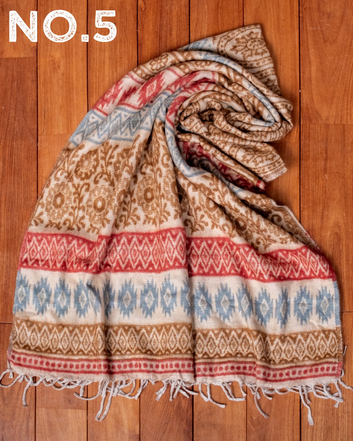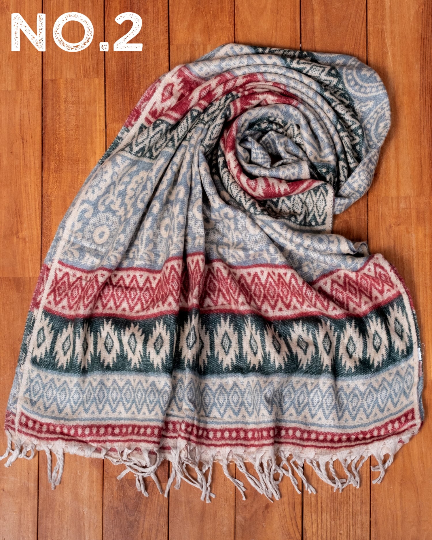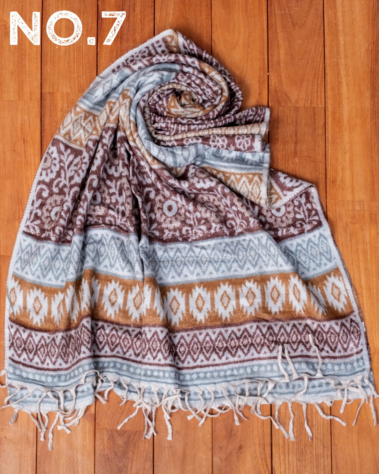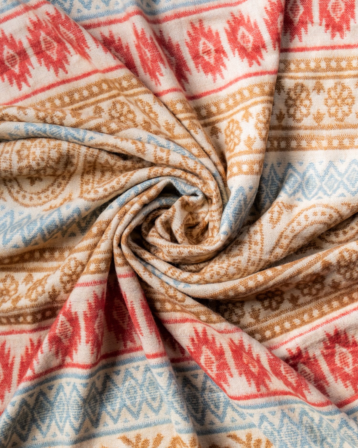 柔らかな起毛で温まる トライバル柄の機織りストール