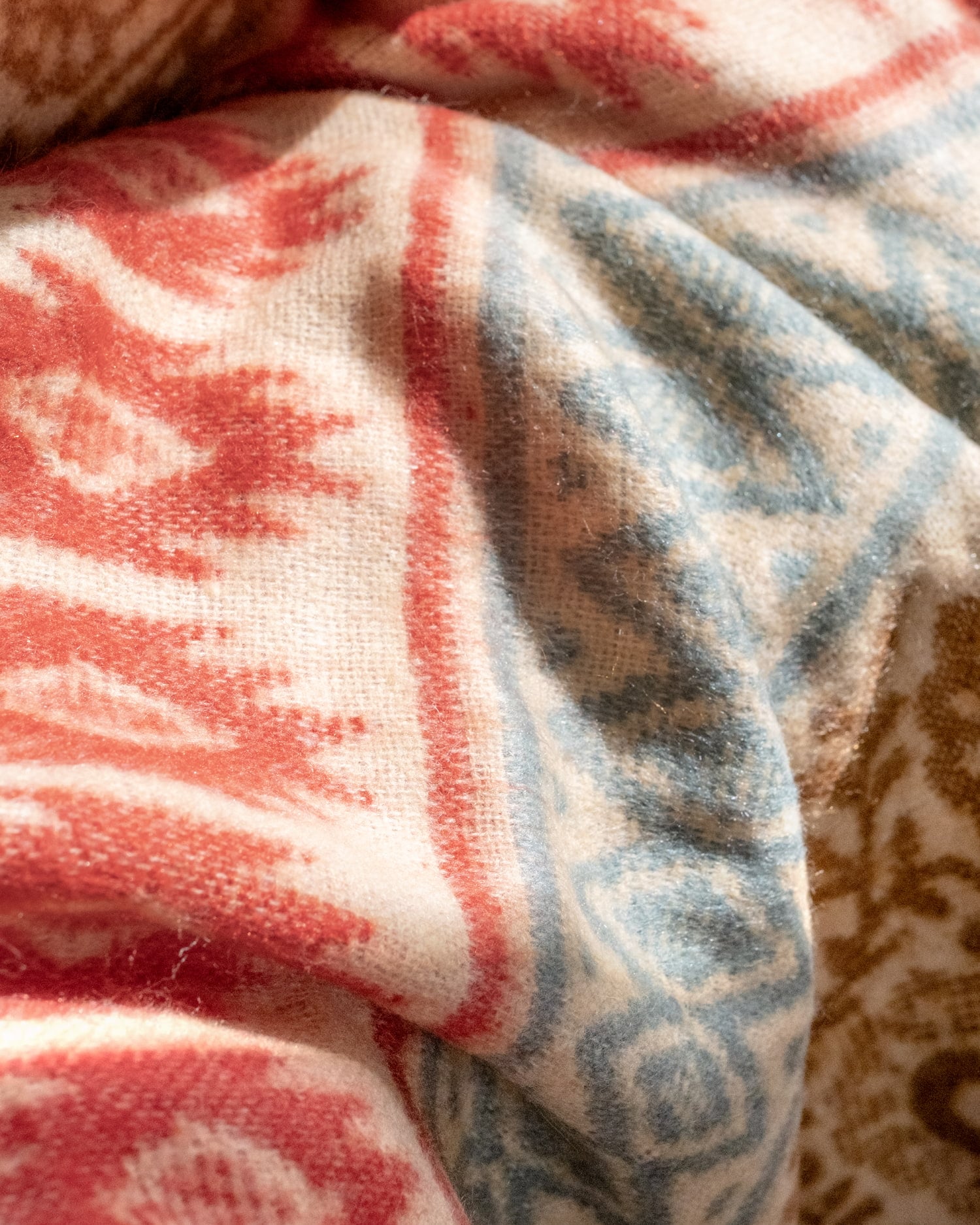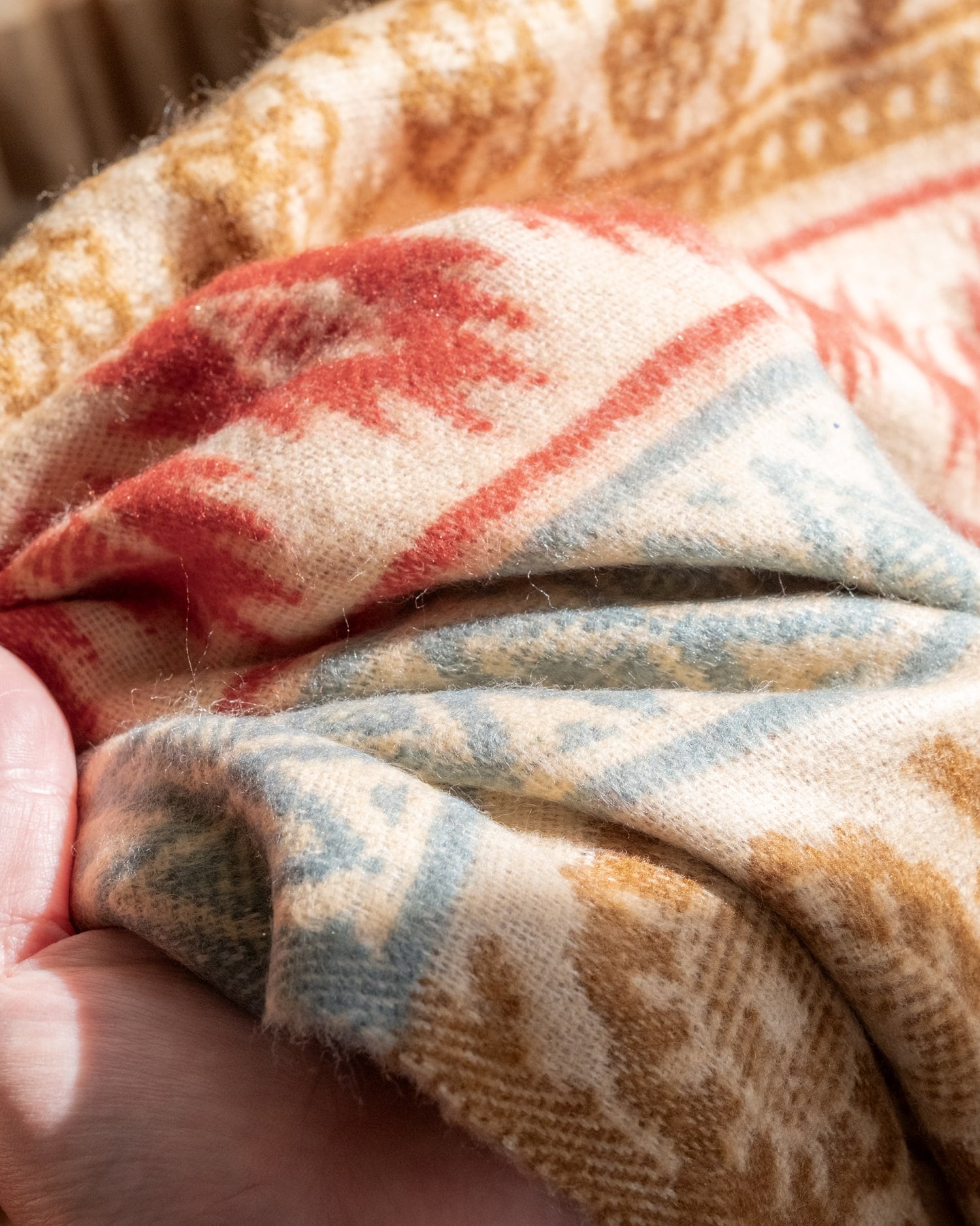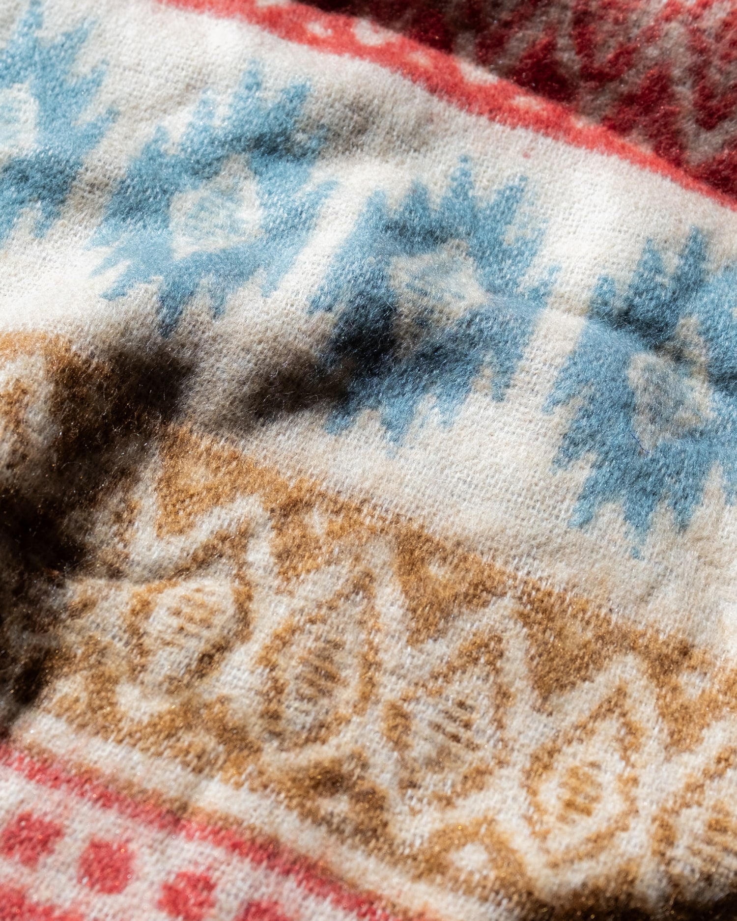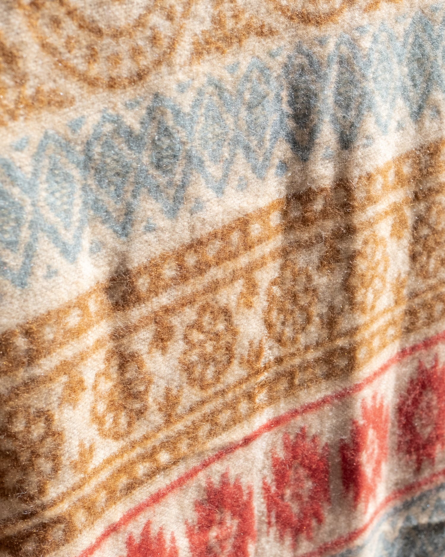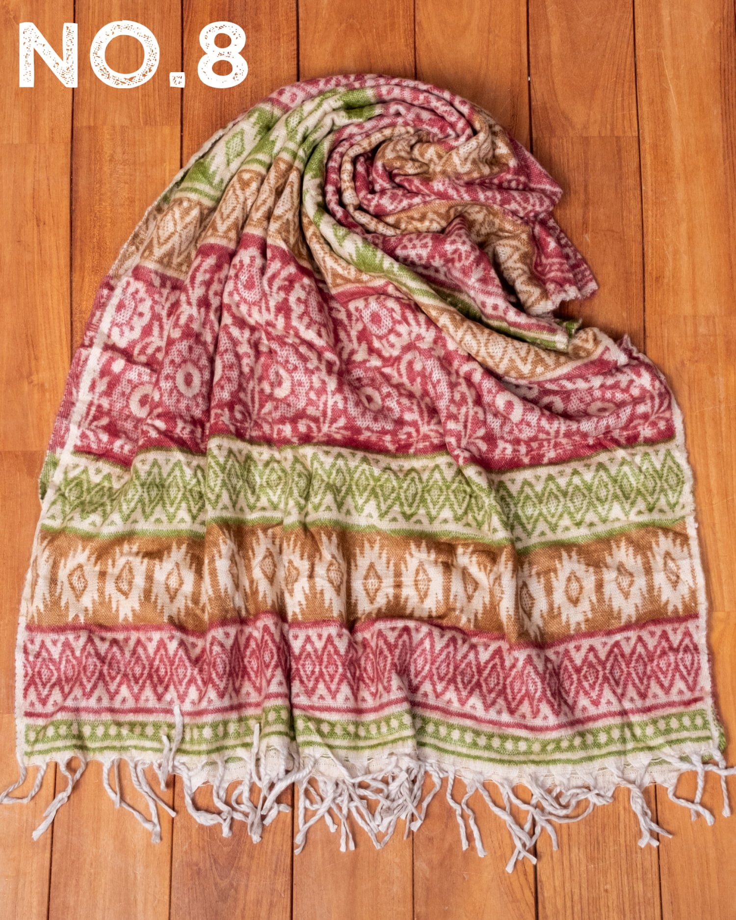柔らかな起毛で温まる トライバル柄の機織りストール