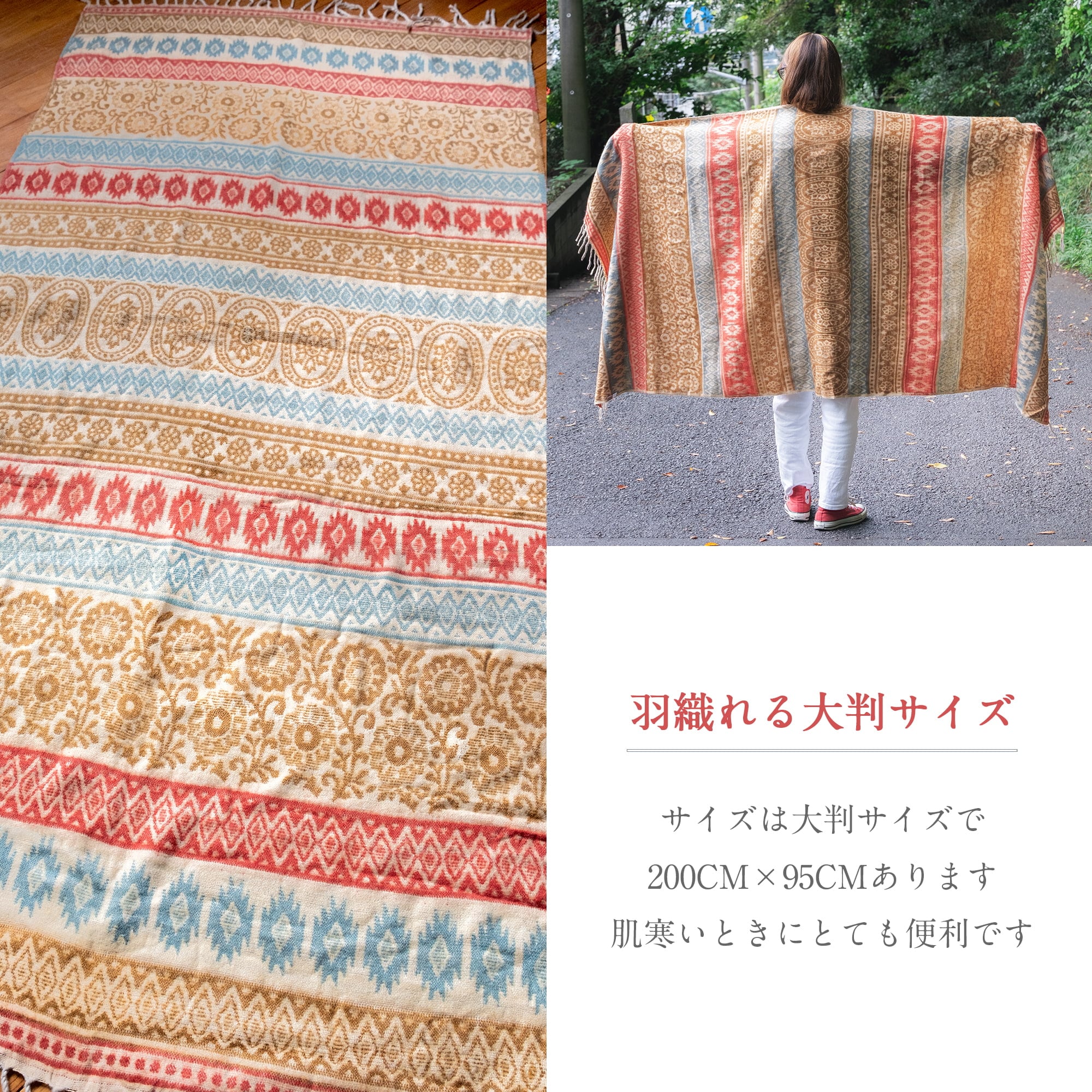 商品のキーワード:ひざ掛け 膝掛け ソファーカバー 暖かい ショール ストール マフラー ブランケット ふんわり あったか おしゃれ 唐草模様 更紗 ペイズリー ユニセックス エスニック フェス キャンプ