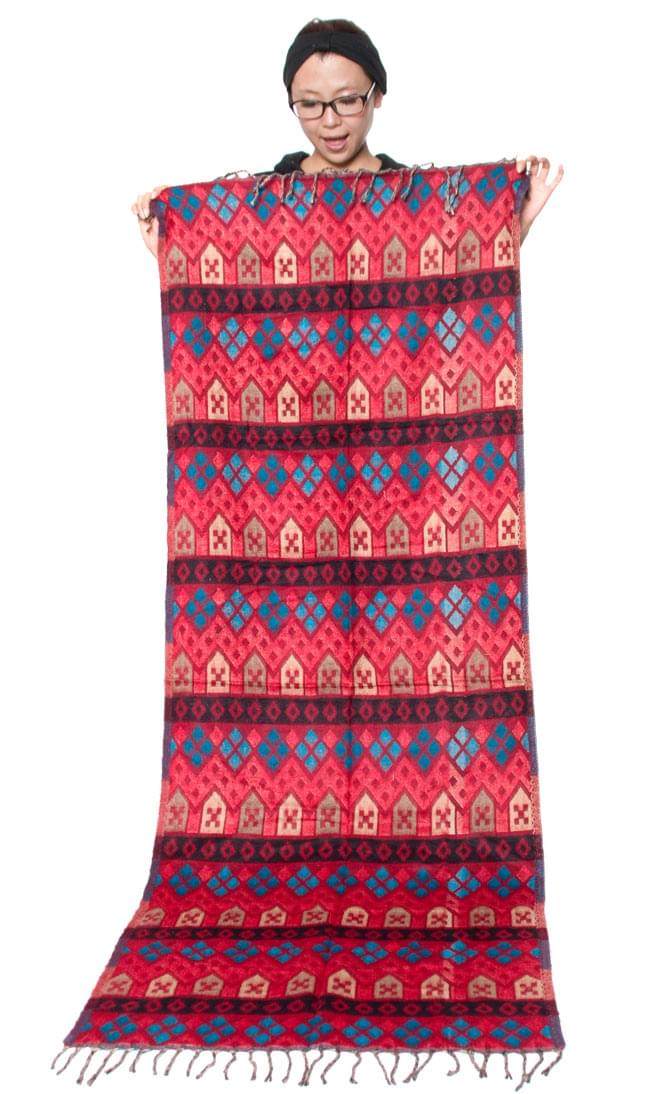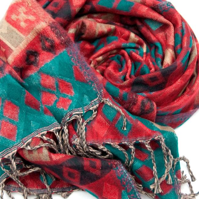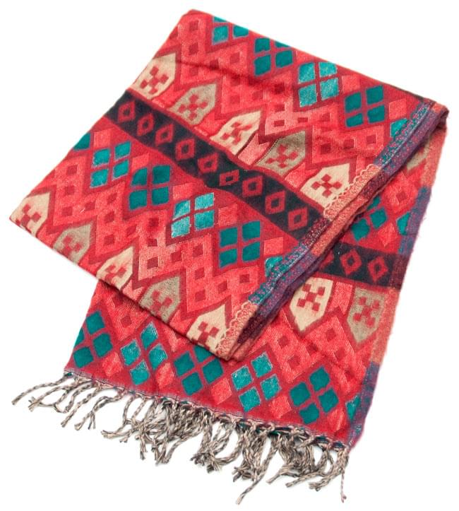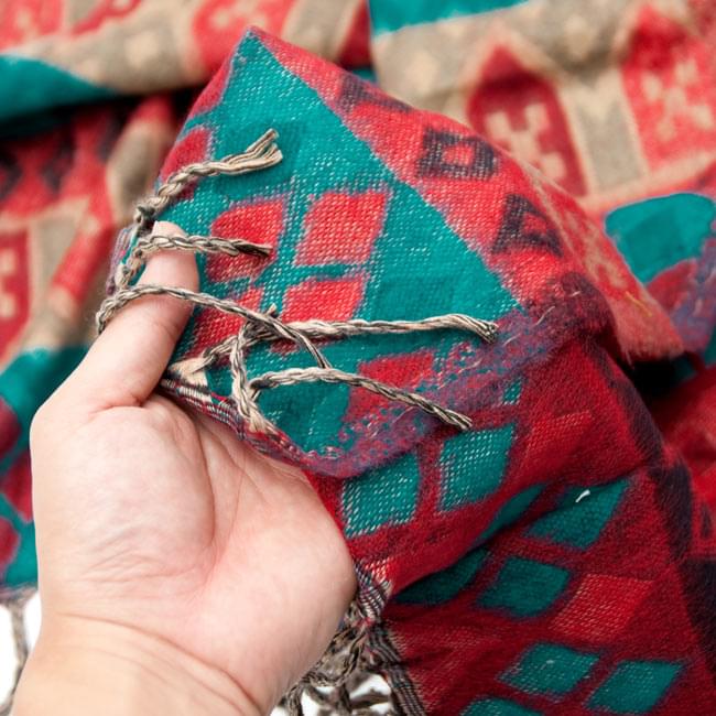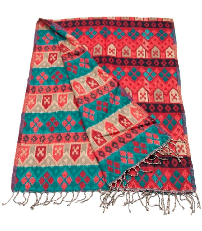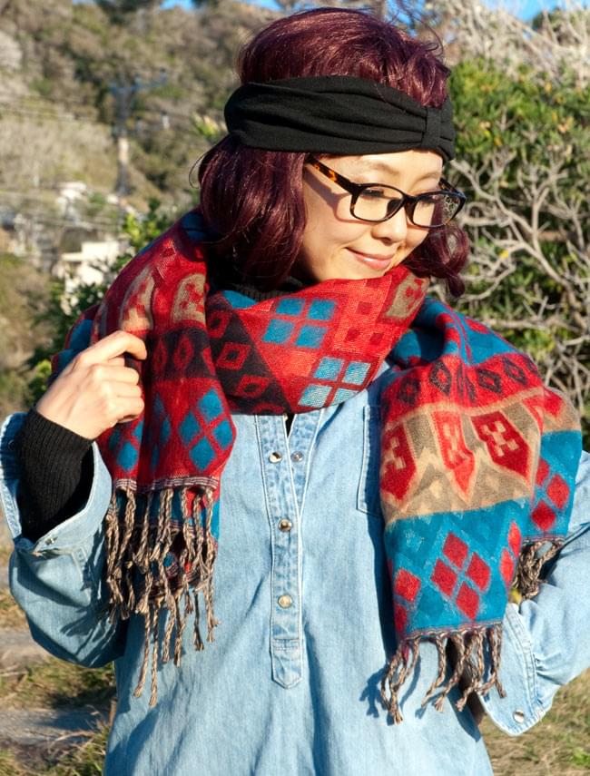 柔らかな起毛で温まる トライバル柄の機織りストール