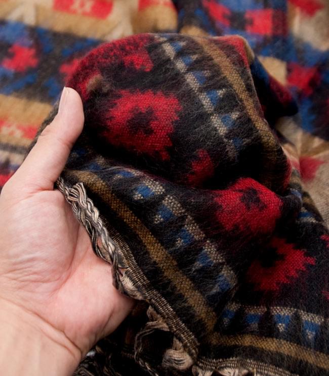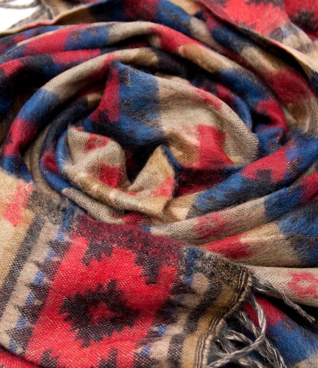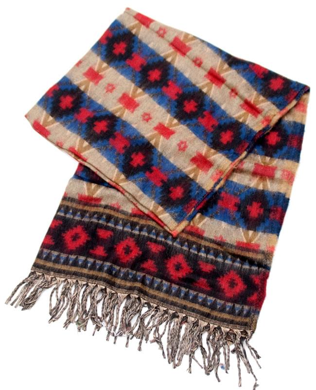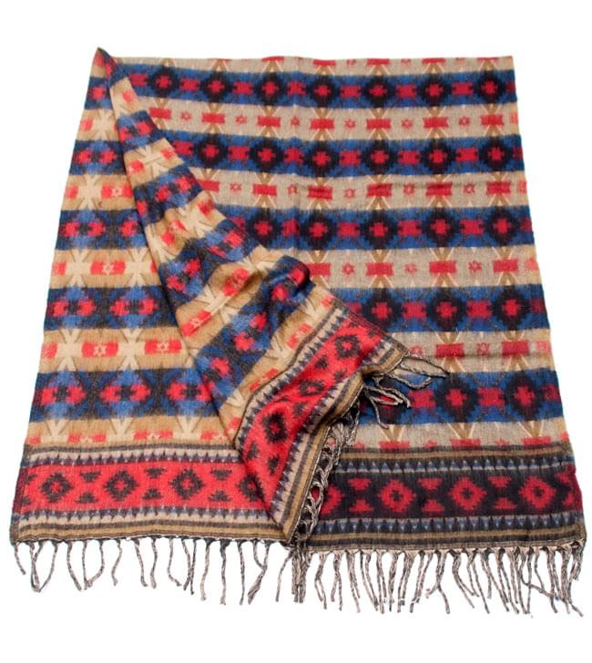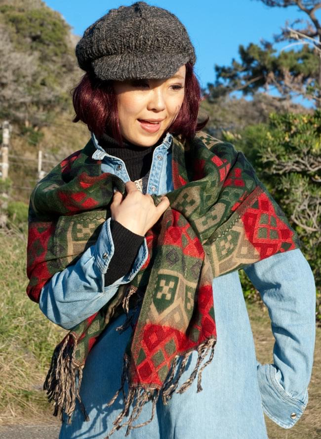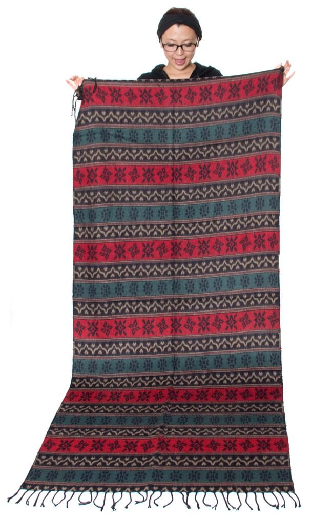 柔らかな起毛で温まる トライバル柄の機織りストール