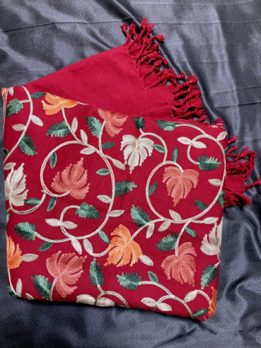 色合いや細かな刺繍が美しいストール。シンプルな服に合わせて羽織ったり、お部屋でひざ掛けとして使用しても◎。 とても美しいデザインなので、お部屋に置いておくだけでもインテリアの1部としてお楽しみいただけると思います。■刺繍の色味に個体差があります